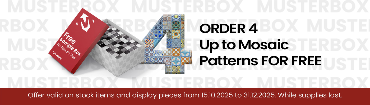 Nabízíme široký výběr kvalitních mozaik a obkladů pro koupelny a toalety, bazény, chodby, obývací pokoje, stejně jako pro terasy a chodníky. U nás najdete různé druhy obkladů, nástěnných a podlahových obkladů, slinuté dlažby, bordury a skleněné mozaiky, například mozaikové obklady, přírodní kámen, obkladové pásky, obkladové panely, bazénové mozaiky, říční oblázky, mozaiky v imitaci dřeva, kovové mozaiky, přírodní kamenné mozaiky, nerezové mozaiky, hliníkové mozaiky, mramorové drtě, mramorové mozaiky, kuchyňské mozaiky, kuchyňské obklady, přírodní kamenné obklady, travertin, břidlici a koupelnové obklady. Koupelnové mozaiky s mnoha možnostmi designu. Nechte se inspirovat rozmanitými tvary, materiály a barvami! Procházejte naše produktové kategorie 24 hodin denně, které pravidelně doplňujeme o nové výrobky. Objednejte si jednoduše z pohodlí domova své vysněné obklady nebo mozaiky jako vzorek či rovnou v požadovaném množství. Dodáváme rychle a bezpečně po celé Evropě. Rádi vám osobně poradíme a společně připravíme nabídky na míru.