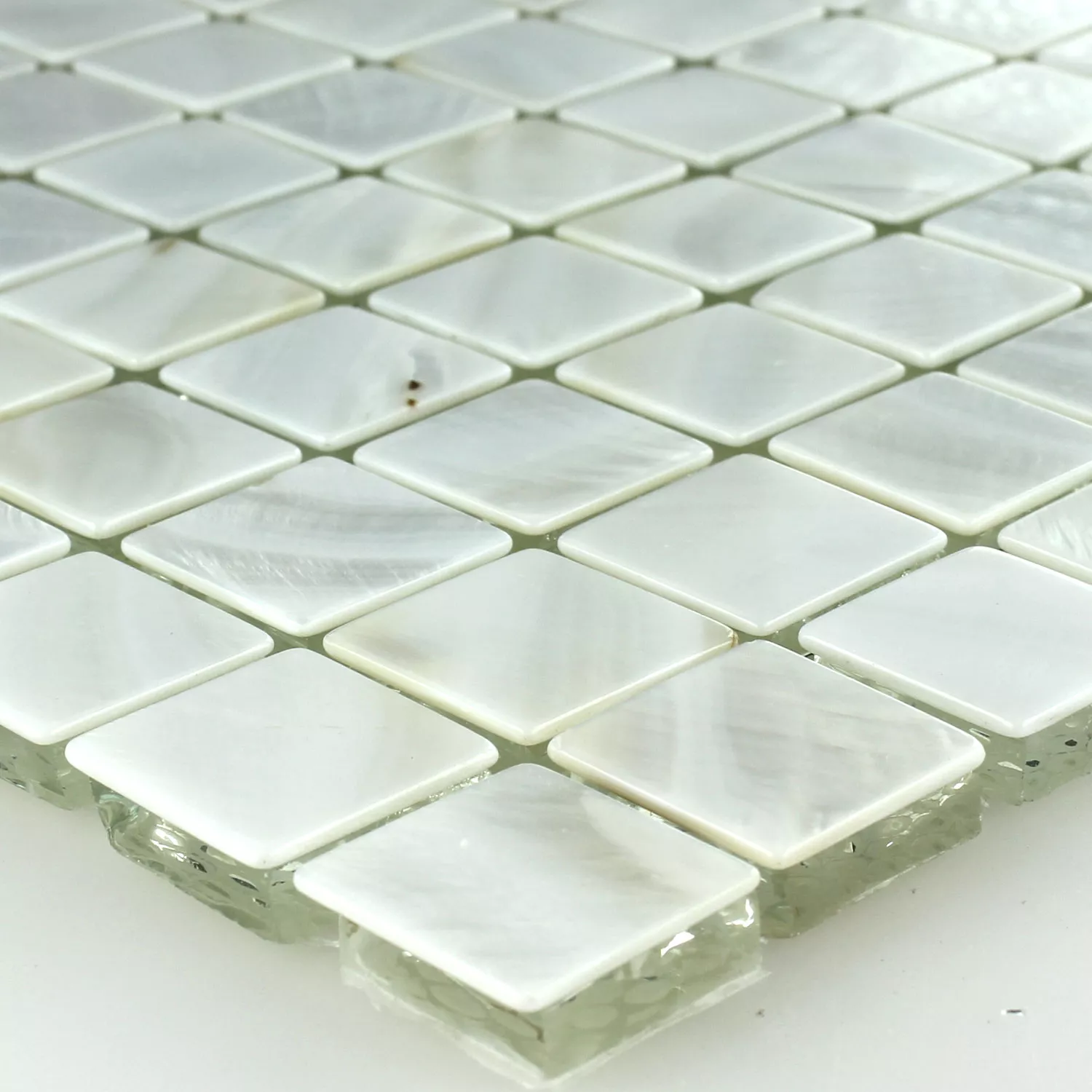 Vzorek Mozaiková Dlaždice Sklo Perleťový Efekt Slonová Kost Bílá