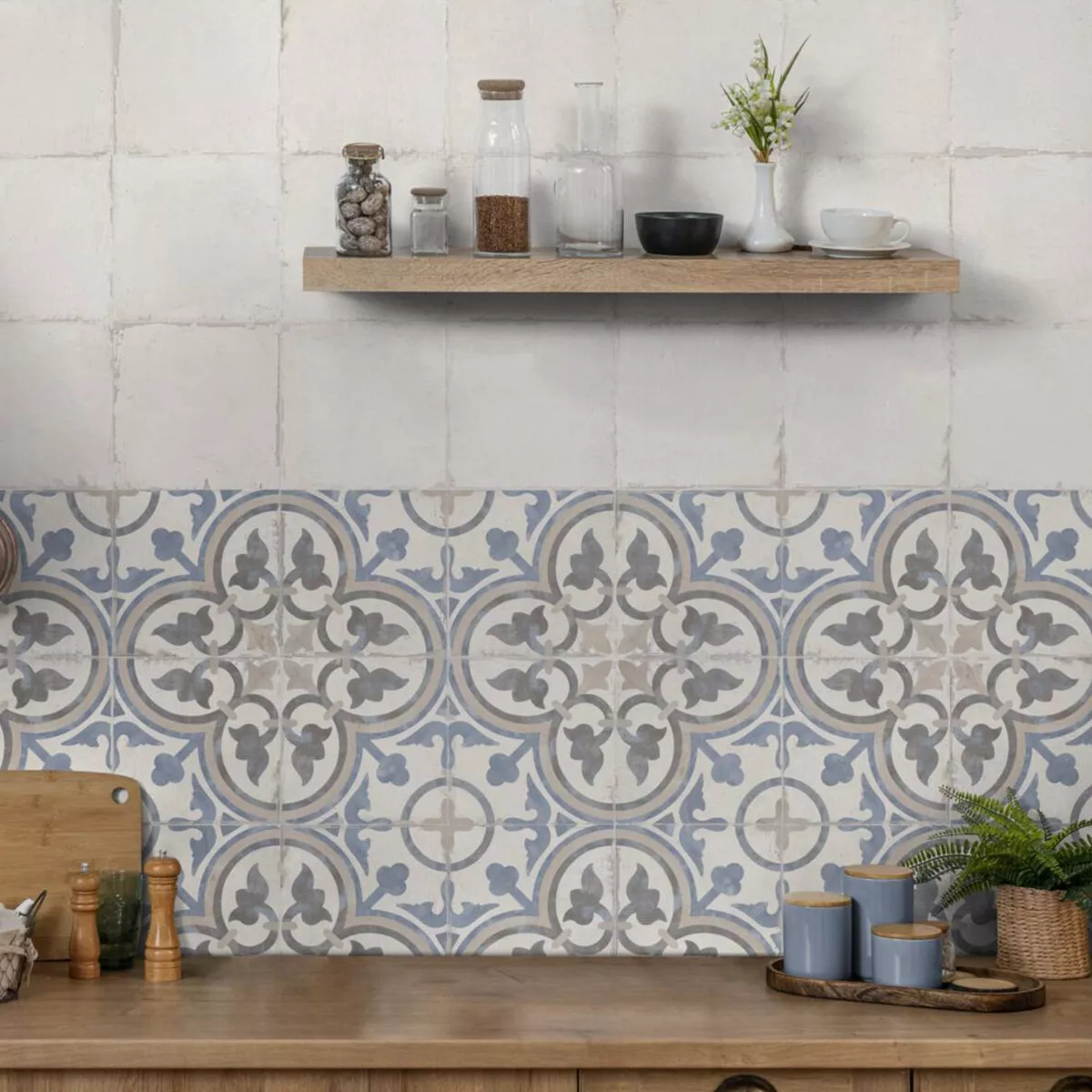 Tato porcelánová dlaždice se vyznačuje atraktivní barevnou paletou, která zahrnuje modrou, hnědou a krémovou, a krásně se hodí k různým stylům interiérů. Povrch má matný, texturovaný povrch, který dlaždici dodává příjemný pocit a atraktivní vzhled. Díky svým speciálním vlastnostem je tato dlaždice protiskluzová, vodotěsná a mrazuvzdorná.