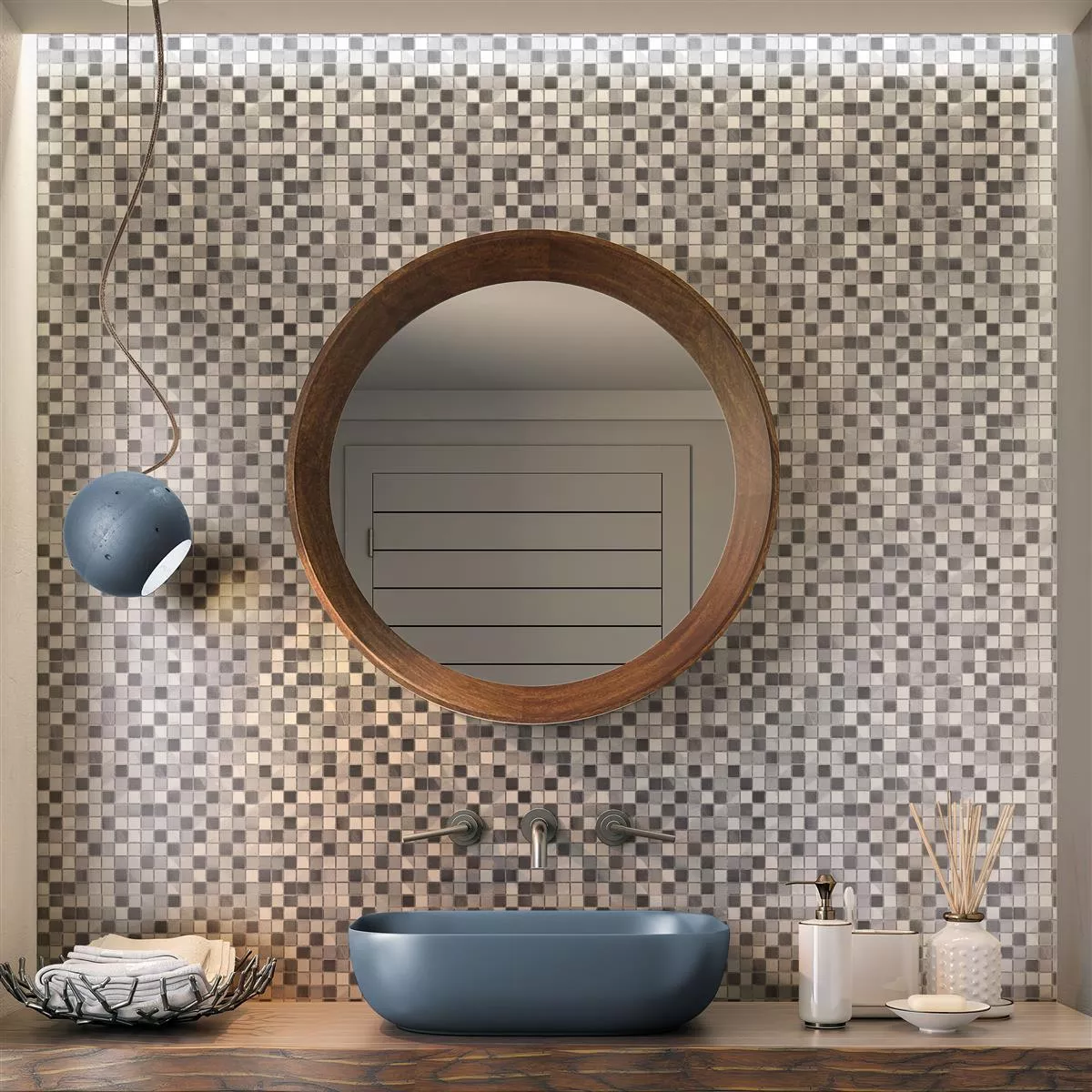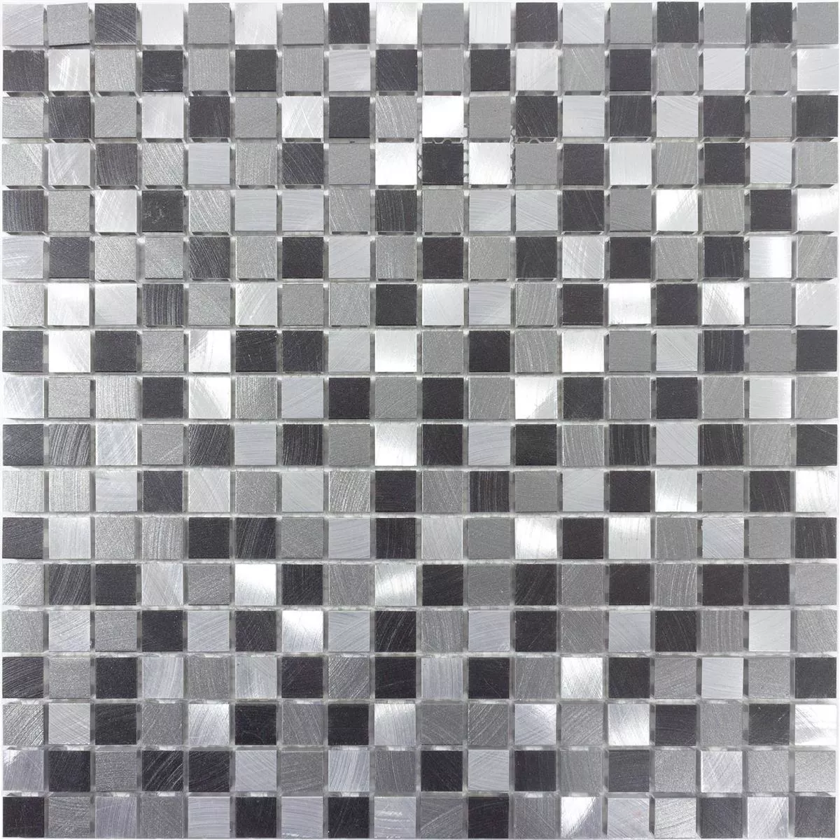 Kovová mozaika Montezuma ve stříbrné a grafitové barvě kombinuje elegantní hliník a kov pro moderní a elegantní design. S kartáčovaným matným povrchem přináší tato mozaika do vašich pokojů jednoduchou, ale luxusní estetiku.