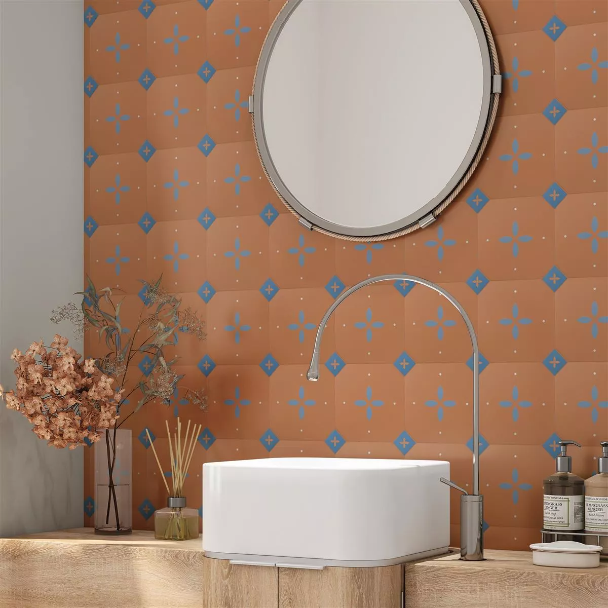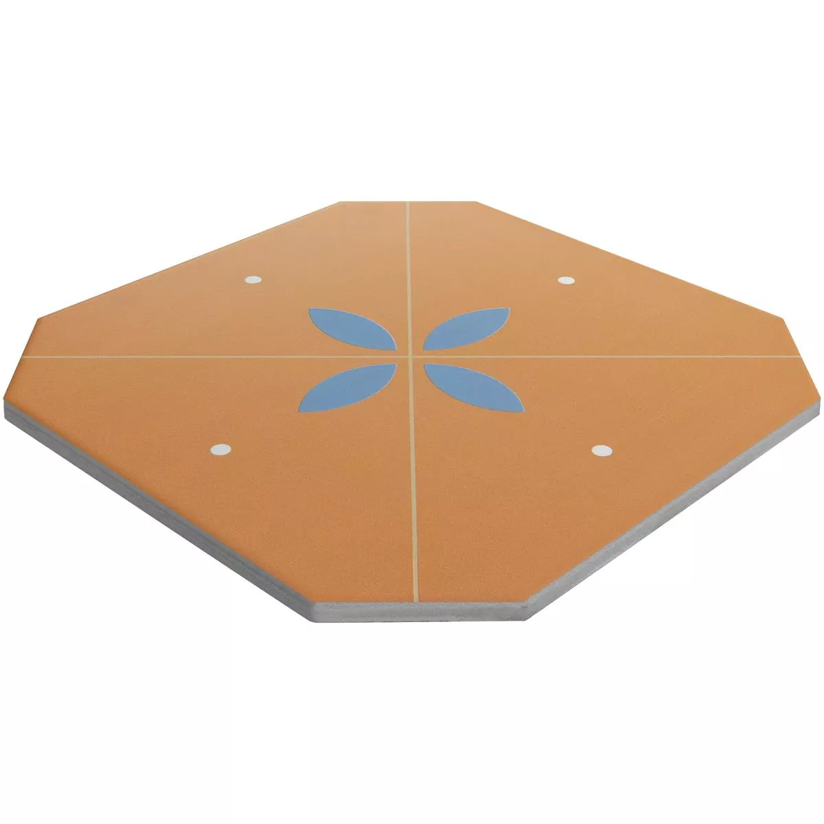 Porcelánové kameninové dlaždice Genexia Decor Ocher Octagon dodají vašemu domovu punc vintage šarmu v okrové barvě. Díky svému jedinečnému formátu osmiúhelníku a retro květinovému vzhledu jsou ideální pro obklady stěn a podlah v různých místnostech.