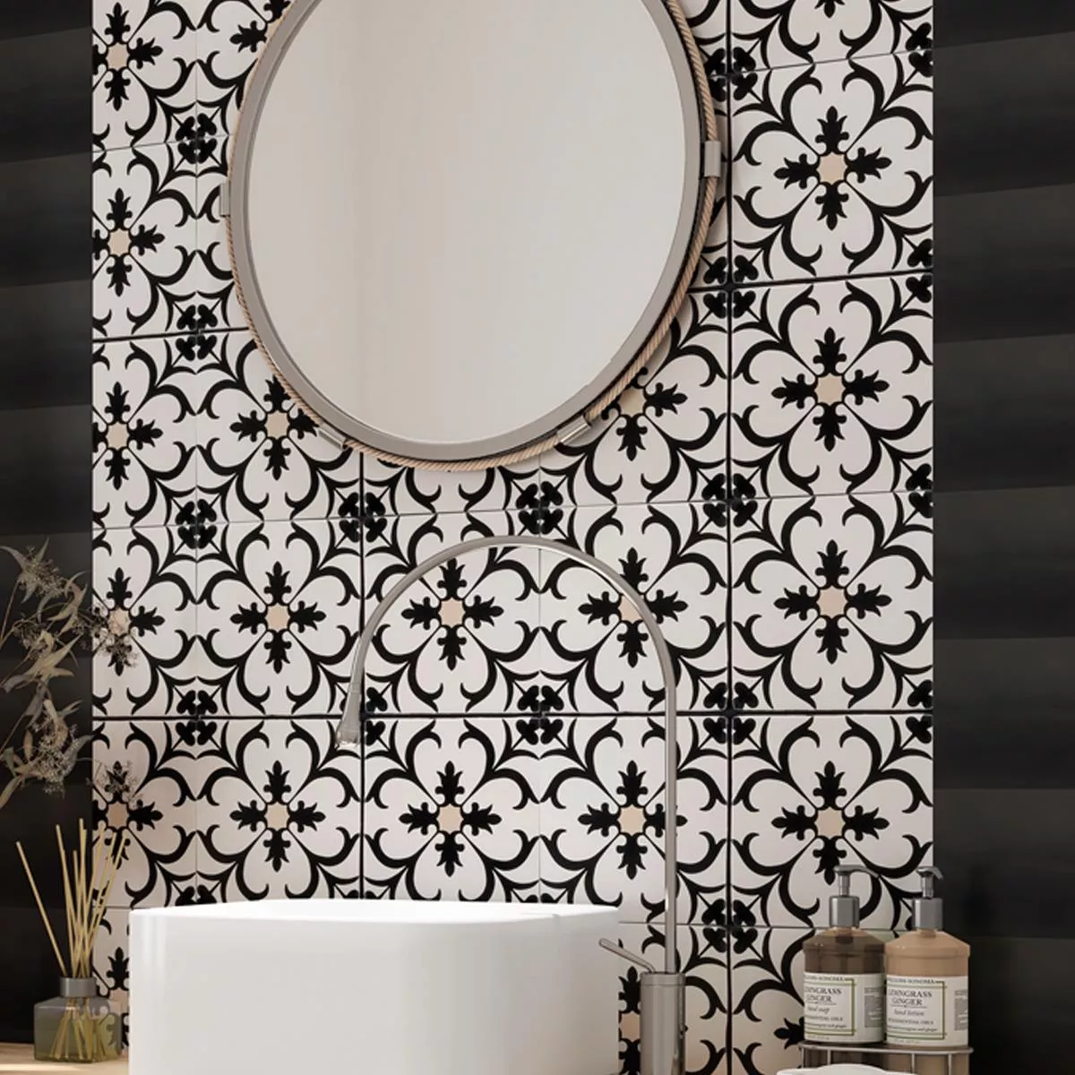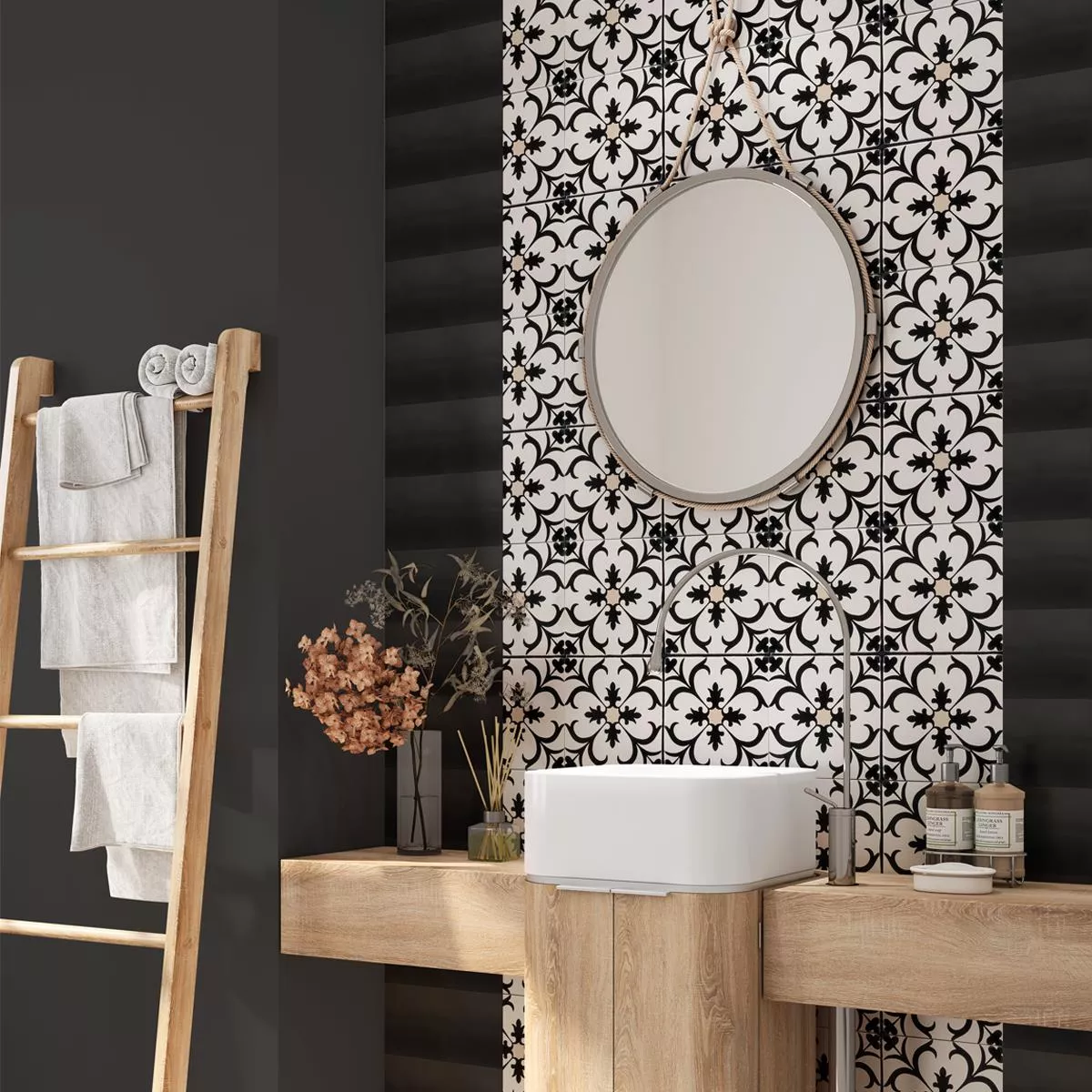 Vneste do svého domova luxus a odolnost, kterou si zasloužíte, s našimi porcelánovými kameninovými dlaždicemi Ornamenti Black.