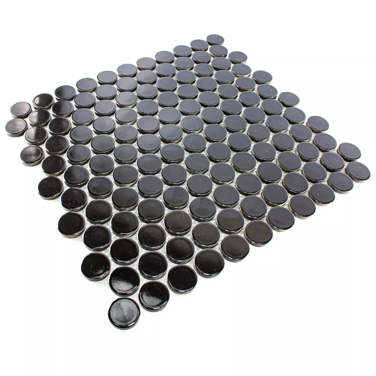 Keramika Knoflíková Mozaikové Dlaždice Harlingen Černá Lesklá