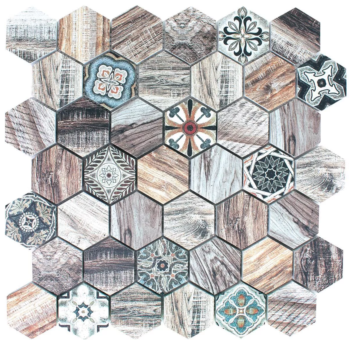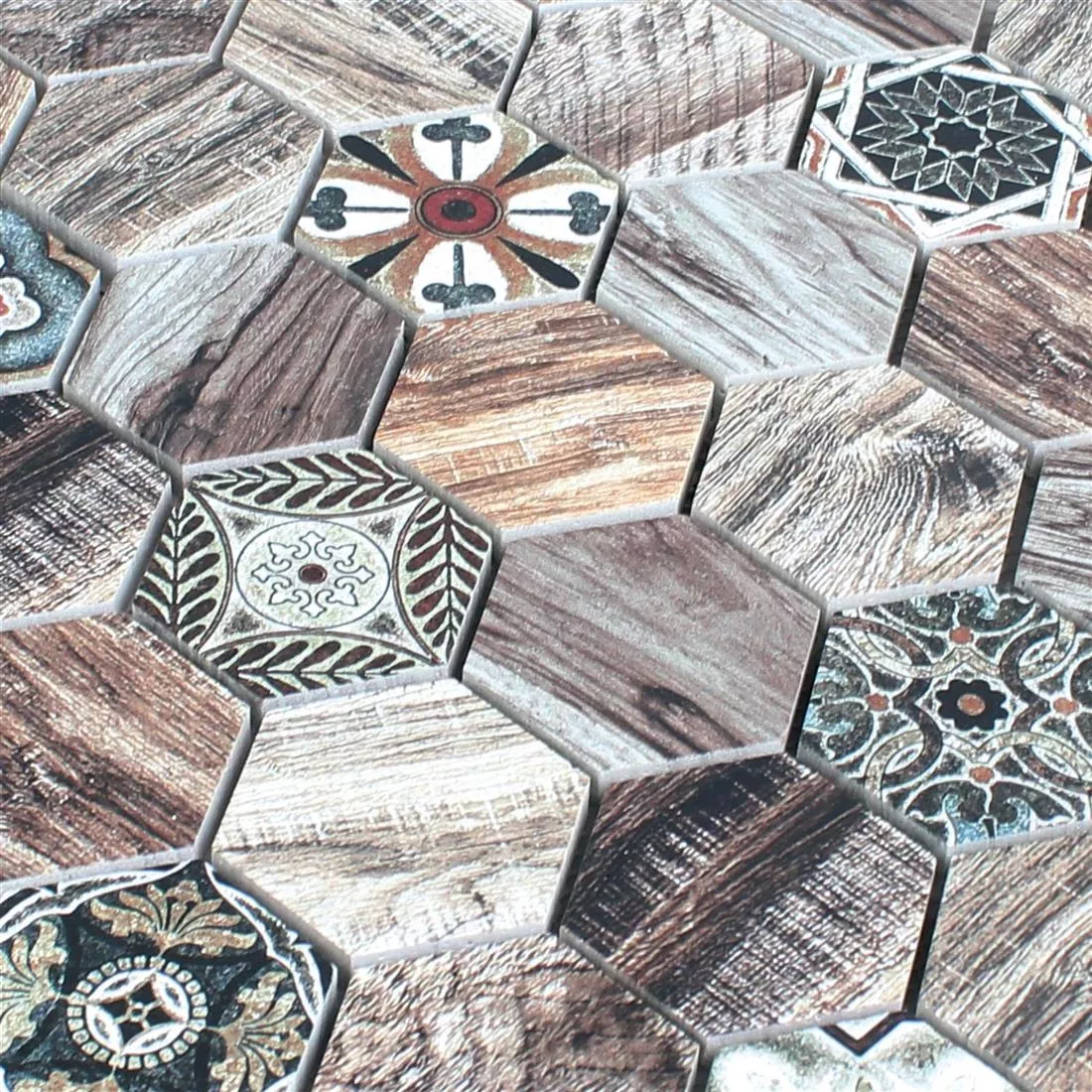 Mozaika Z Přírodního Kamene Dlaždice Kapstadt Dřevěný Vzhled Hnědá