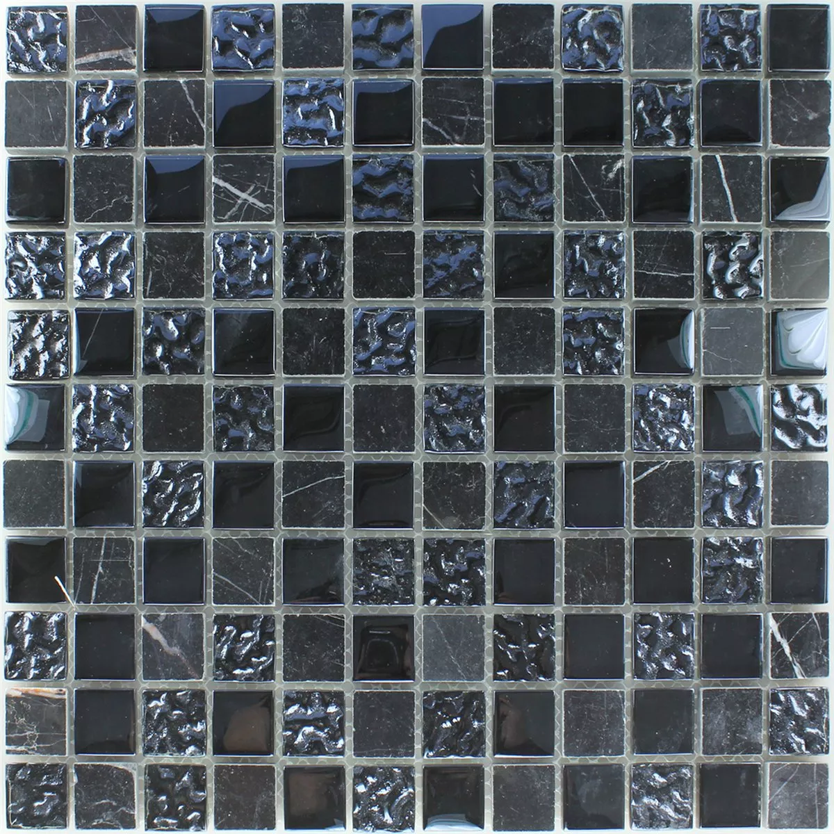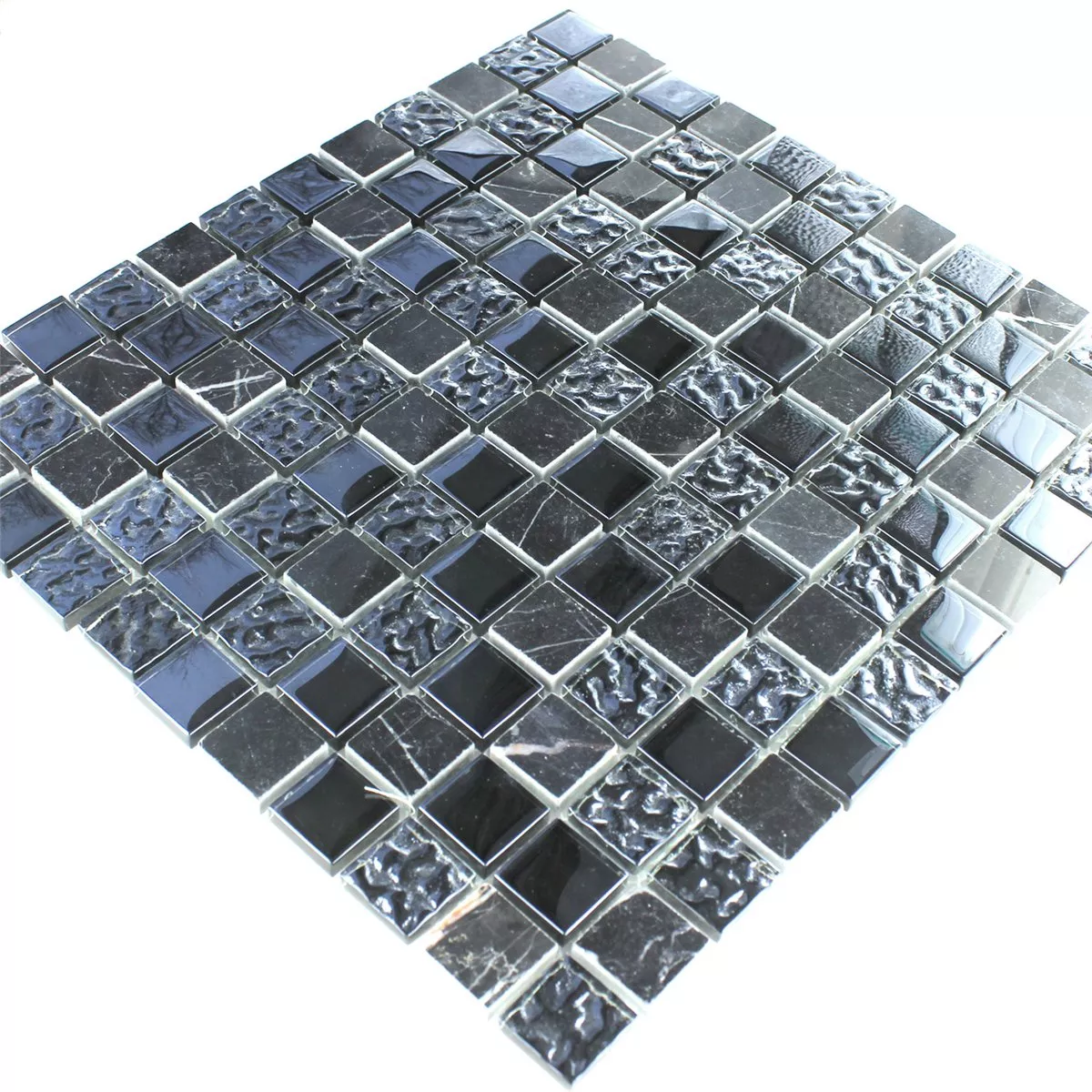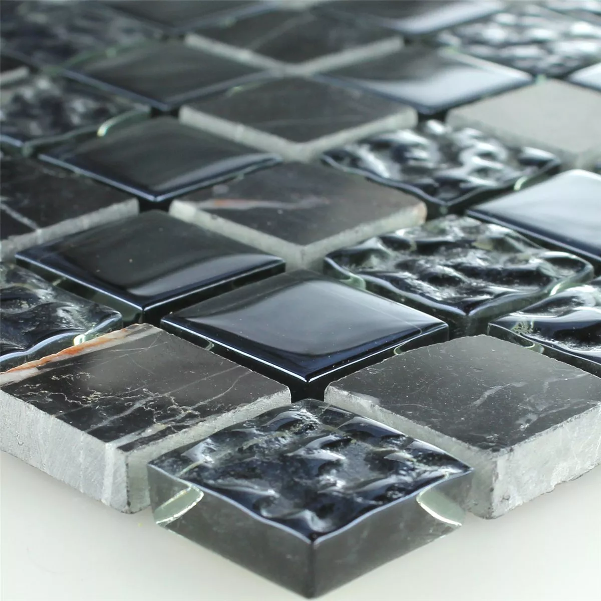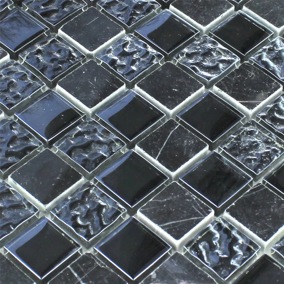 Mozaiková Dlaždice Sklo Mramor Černá Drážkovaný 25x25x8mm