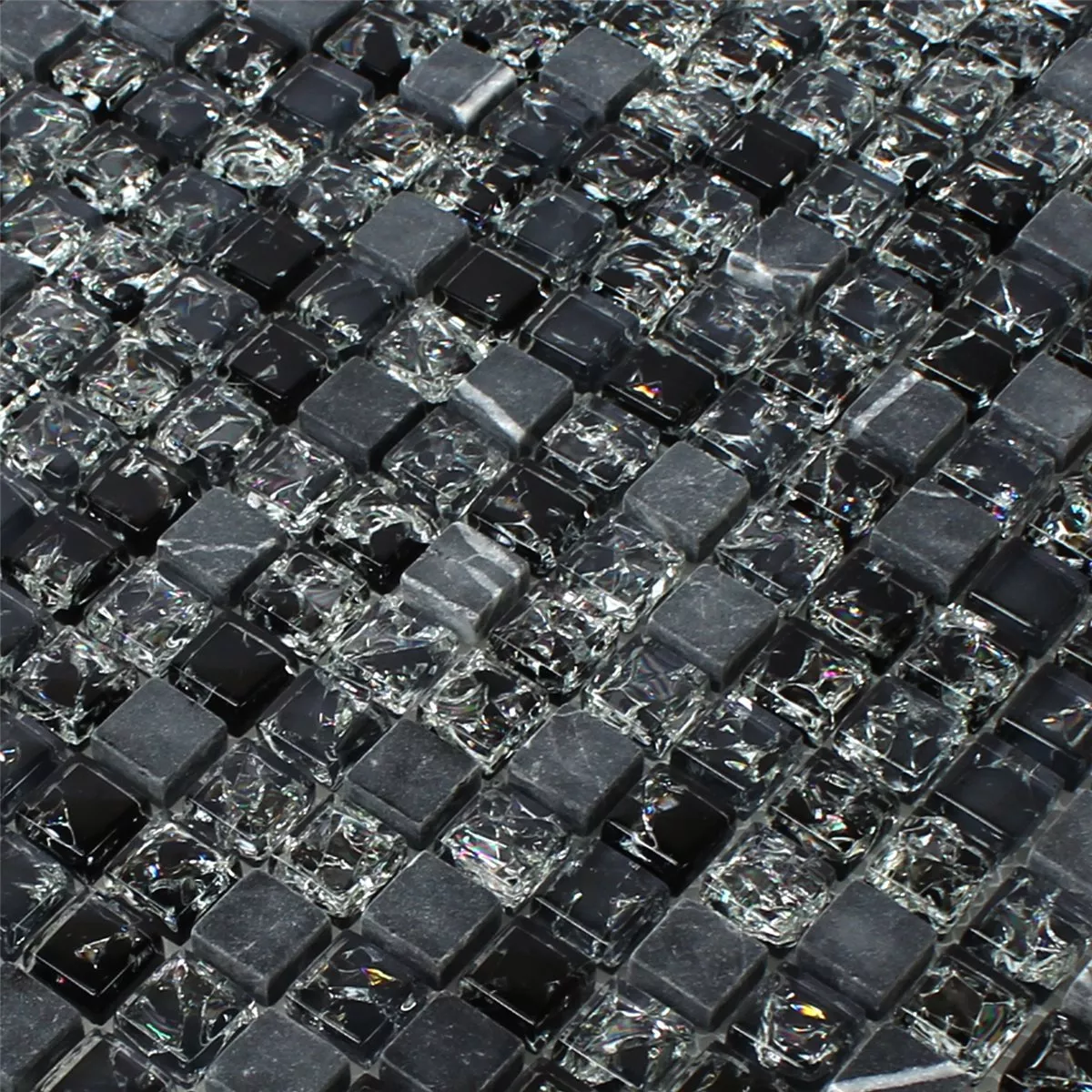 Mozaiková Dlaždice Sklo Přírodní Kámen Skleněné Střepy Černá