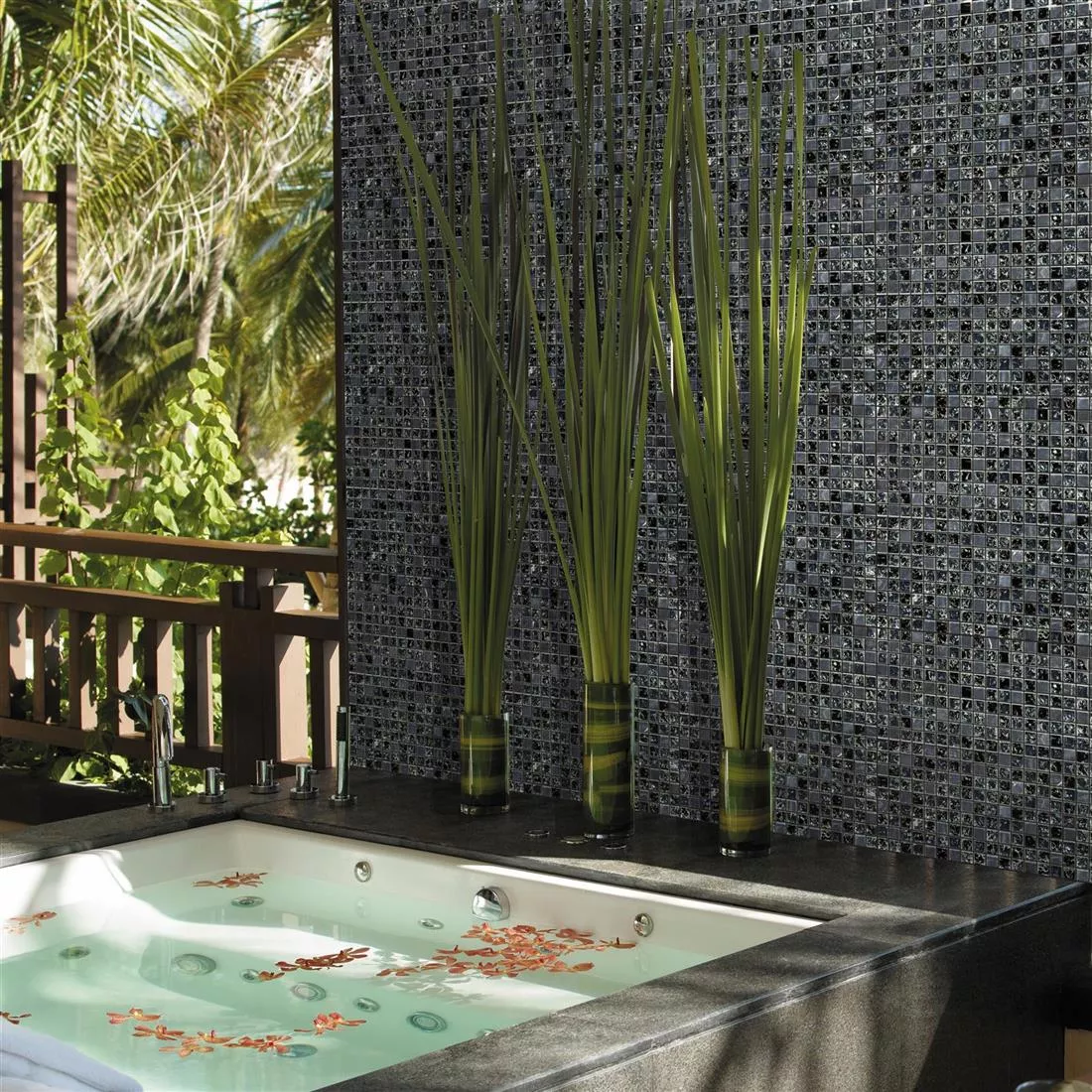 Moderní série obkladů Malawi v černé barvě nabízí obzvláště třpytivý efekt jako efektová mozaika díky kombinaci lámaného skla s přírodními kameny, jakmile na tyto mozaikové obklady dopadají paprsky světla. Trendová mozaika z přírodního kamene je ve všech částech leštěná a proto se velmi snadno udržuje. Skleněná mozaika je vyrobena z čistých střepů, takže mozaikové dlaždice Malawi jsou vizuálně přitažlivým a ekologickým řešením pro všechny stěny v domácnosti. Protože kvalitní mozaika z přírodního kamene neutáhne jen oči v koupelně nebo na chodbě. Důmyslně řešená skleněná mozaika, která je dostupná v různých barvách, vykouzlí nádech luxusu v každé místnosti v domě, protože skleněné kamínky se lesknou jako diamanty.