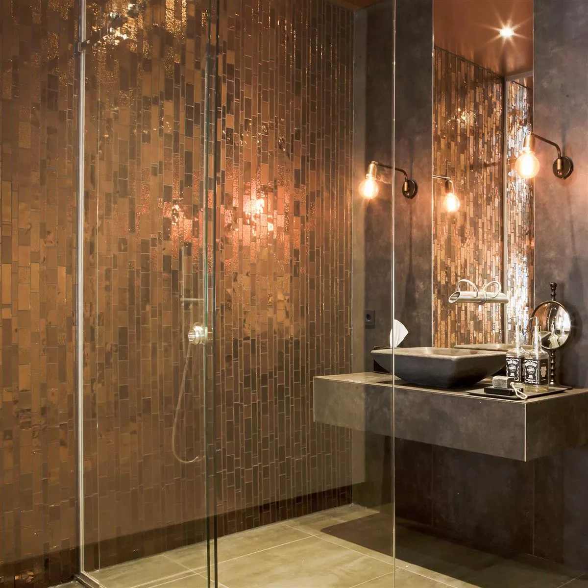 Pokud si při zařizování obývacího pokoje ceníte individuální styl, kvalitní materiál a trendy vzhled, měli byste poznat skleněnou mozaiku Metropolis in Amber. Tuto skleněnou mozaiku vyrábí slavný a renomovaný italský výrobce sklokeramiky, společnost Trend-Vi. Podlahy, které byly opatřeny skleněnou mozaikou, mají obzvláště elegantní vzhled, ale jsou stejně nenáročné na údržbu a odolné jako ostatní dlážděné podlahy.Mozaikové dlaždice jsou k dispozici jako tyčinky o tloušťce 4 mm, rozměr rohože je 30,8x28. 8 cm.