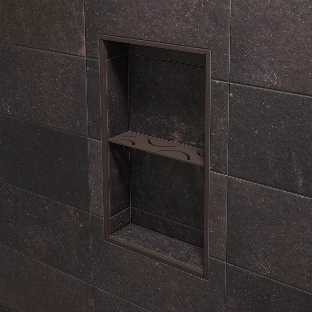 Schlüter-SHELF-N-S1 Bronz Obdélníková nástěnná police Se Schlüter-SHELF-N-S1 můžete prefabrikovanou niku Schlüter-KERDI-BOARD vybavit přesně padnoucí policí při pokládání obkladů. To není vše: máte také maximální flexibilitu, pokud jde o materiál a design. Vysoce kvalitní nástěnná police do niky je vyrobena buď z kartáčované nerezové oceli, nebo z hliníku s texturovaným povrchem.
