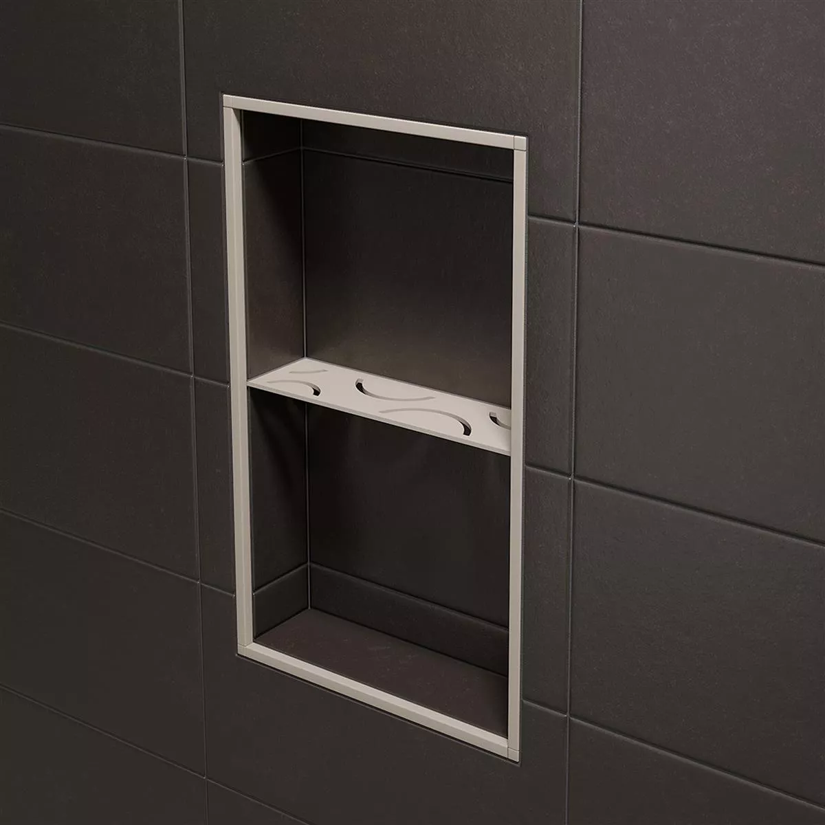 Schlüter-SHELF-N-S1 Krémová Obdélníková nástěnná police S Schlüter-SHELF-N-S1 můžete prefabrikovanou niku Schlüter-KERDI-BOARD vybavit přesně padnoucí policí při pokládání obkladů. To není vše: máte také maximální flexibilitu, pokud jde o materiál a design. Vysoce kvalitní nástěnná police do niky je vyrobena buď z kartáčované nerezové oceli, nebo z hliníku s texturovaným povrchem.
