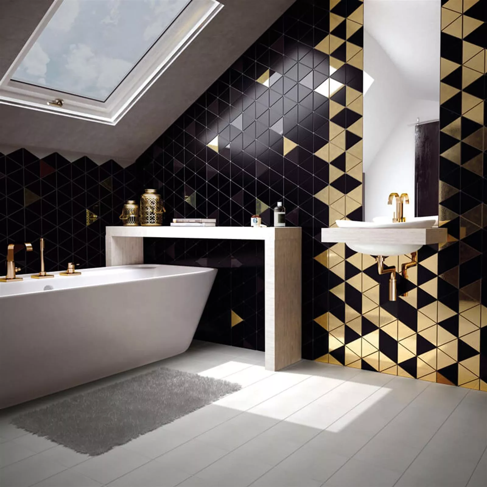 Exkluzivní obkládačka Britannia s rozměrem 10,8 x 12,4 cm zaujme nejen svým trojúhelníkovým tvarem. Robustní dlaždice má tloušťku 9,3 mm a je vhodná pro mnoho kreativních projektů, nejlépe v interiéru. Materiál je kamenina. Je k dispozici v barvách modrá, krémová, zlatá, šedá, světle modrá, světle šedá, mint, černá, bílá a béžová a upoutá pozornost v každé místnosti.