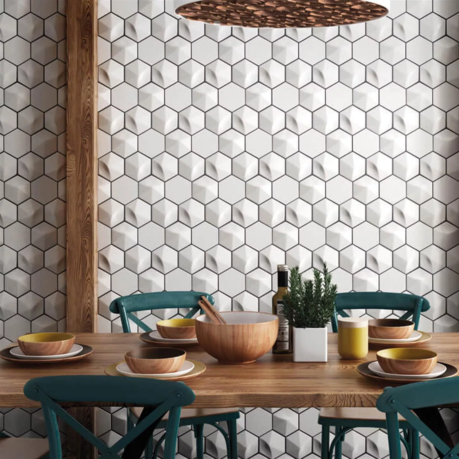 Nástěnné Obklady Rockford 3D Šestiúhelník 12,4x10,7cm Bílá