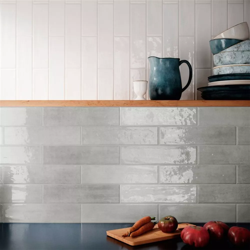 Tyto glazované obdélníkové dlaždice o rozměrech 7,5 x 30 cm a tloušťce 8,4 mm vnesou do vašich pokojů vintage estetiku. Zvlněný, lesklý povrch dodá vašim stěnám jemnou dynamiku.