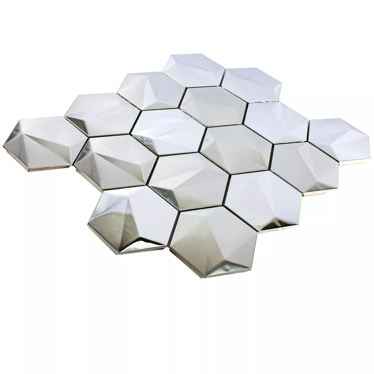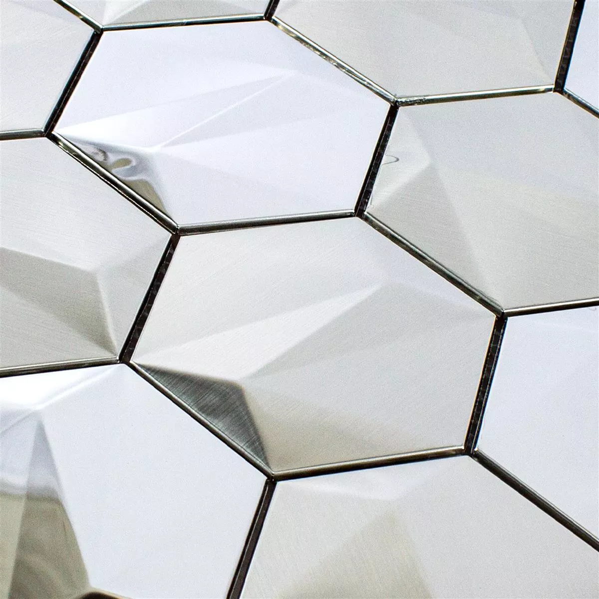 Nerezová Ocel Mozaiková Dlaždice Durango Šestiúhelník 3D Stříbrná