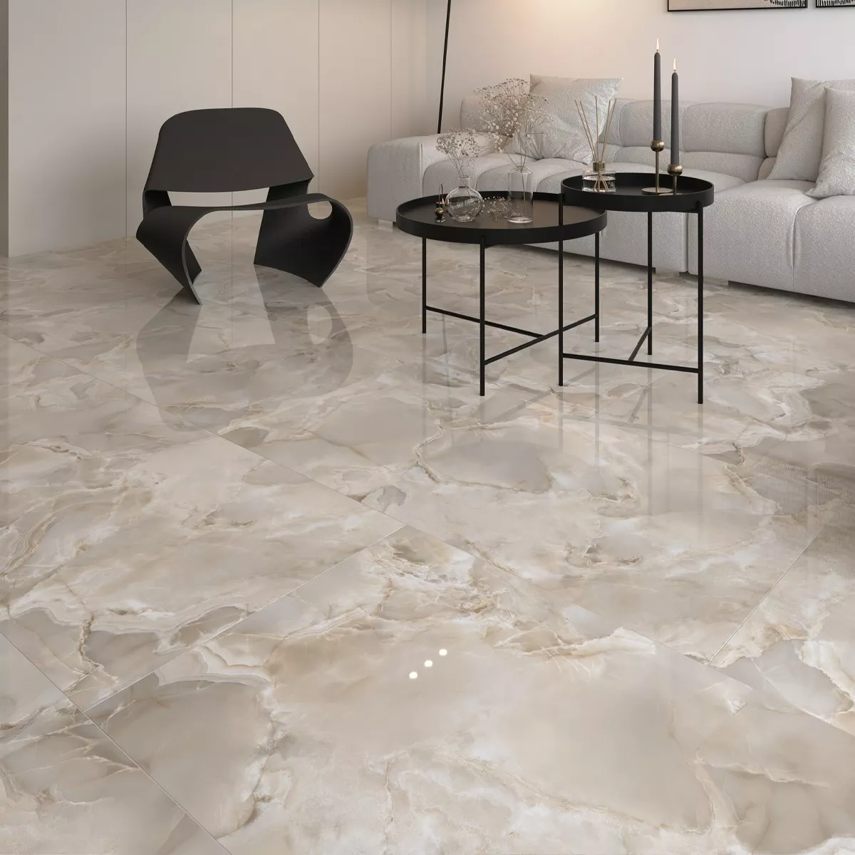 Porcelánová kameninová dlažba se také vyznačuje svou voděodolností a vhodností pro podlahové vytápění. Její leštěný povrch a krémová barva jí umožňují bezproblémové začlenění do mnoha barevných schémat.