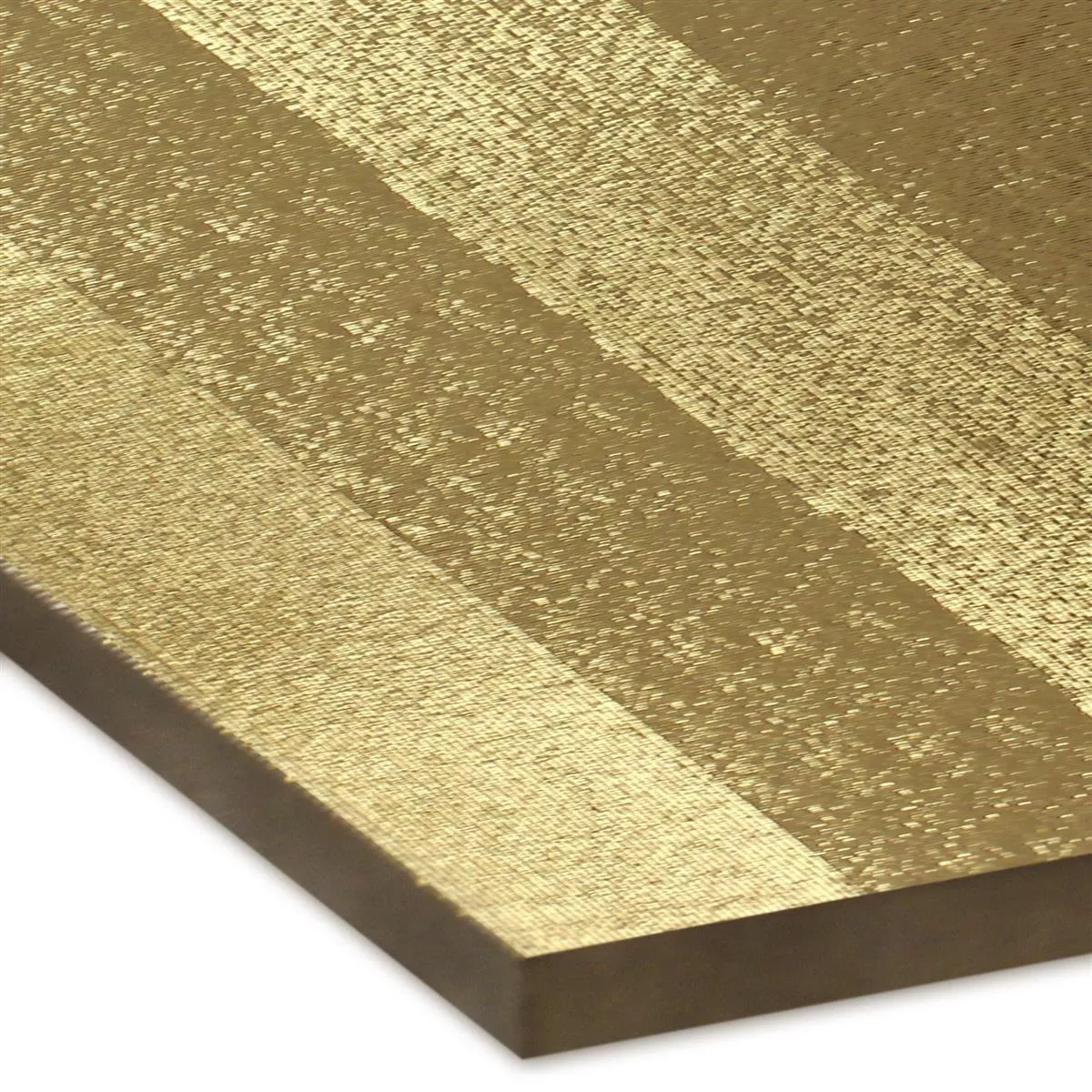 Dekorativní obklad Melody ve zlaté struktuře 25 x 75 cm je keramický obklad a stále více dobývá soukromé bydlení díky svému modernímu vzhledu a optimálním technickým vlastnostem. Je nabízen ve velikosti 25 x 75 cm a tloušťce 9,5 mm. Tuto sérii obkladů najdete také v barvách bílá, stříbrná a zlatá. Nabízí lesklý povrch, díky kterému vypadají obklady v koupelně obzvlášť elegantně. Vyrábí se rektifikovaná, tedy s přesnými úhly 90 stupňů, takže ji lze pokládat pouze s úzkou šířkou spáry.