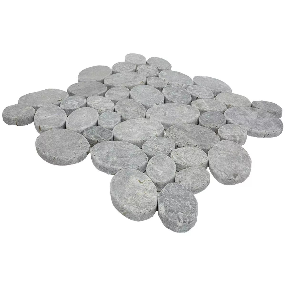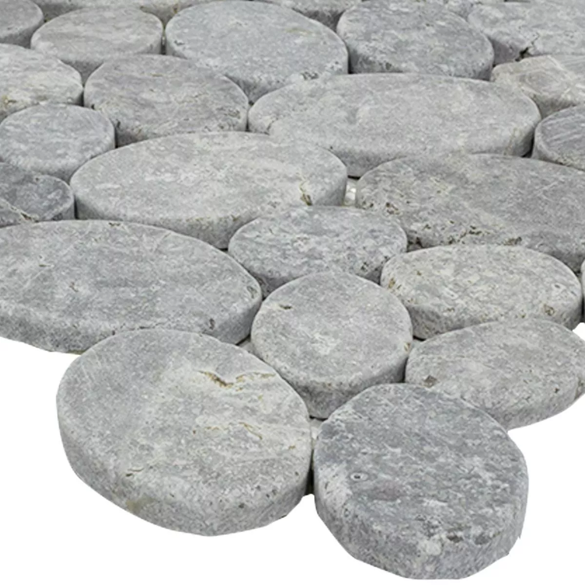 Oblázková mozaika Leoben v elegantních barvách šedá a antracit z přírodního kamene nabízí přírodní a zároveň moderní designovou variantu stěn a podlah. Povrch dlaždic je broušený a matný a vytváří autentický, ale současný vzhled, který lze dokonale integrovat do různých stylů bydlení.