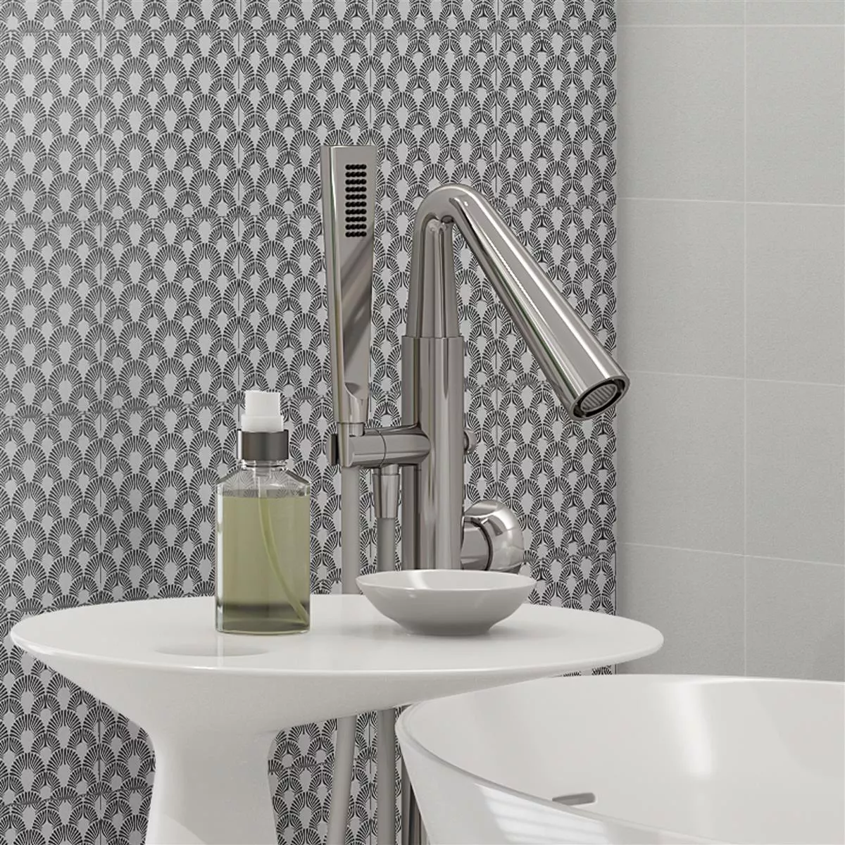 Objevte nadčasovou eleganci našich obkladů a dlažeb s černými květinovými ornamenty z glazované porcelánové kameniny a dodejte svým pokojům nádech sofistikovanosti. Tyto obklady kombinují stylový design s funkčními vlastnostmi a vytvářejí elegantní atmosféru v obývacích pokojích, kuchyních, koupelnách a sprchových koutech.