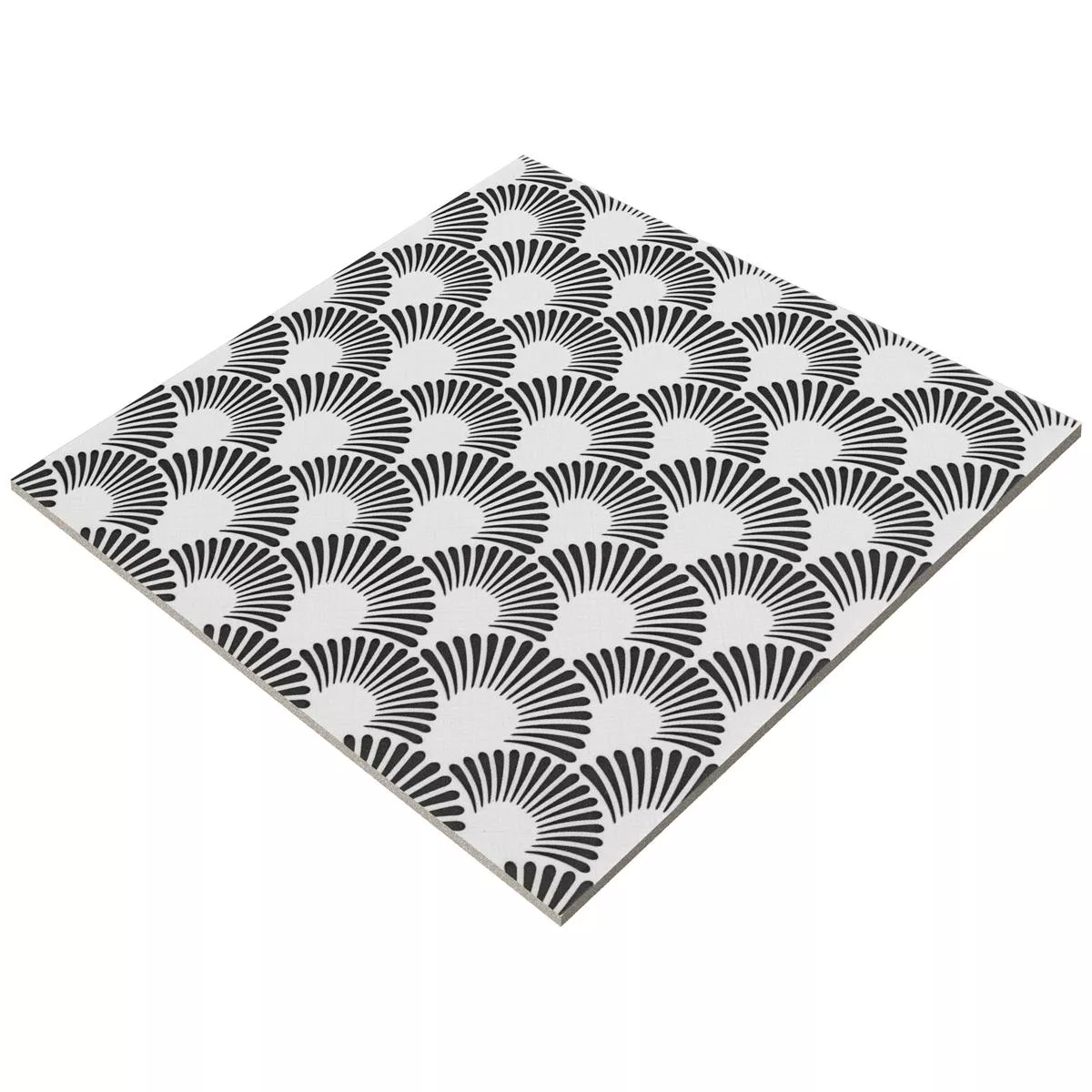 Podlahové Dlaždice Cementový Vzhled Wildflower Černá Dekor 18,5x18,5cm