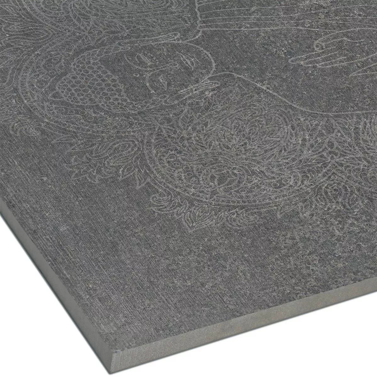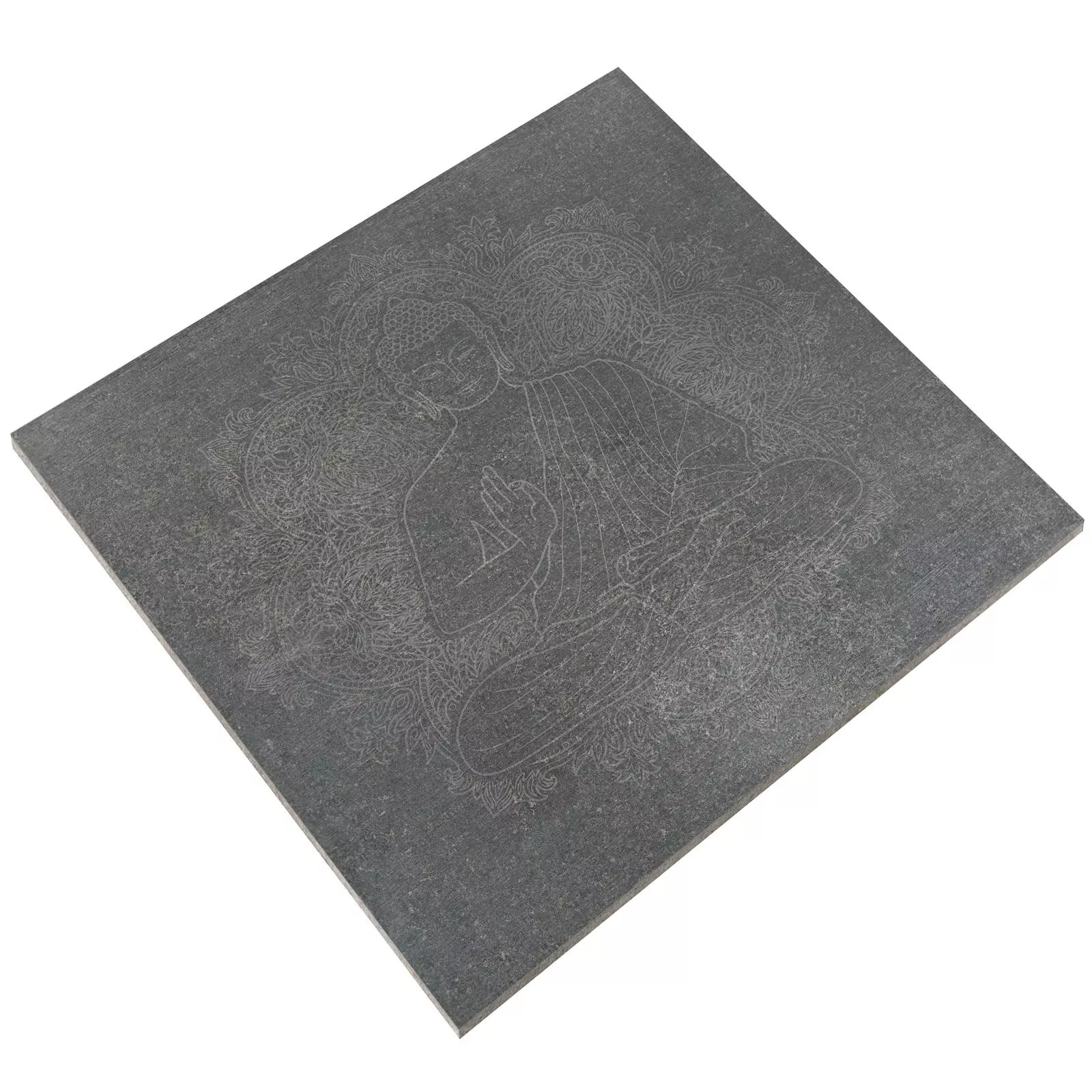 Podlahové Dlaždice Kámen Vzhled Horizon Antracitová Dekor Buddha