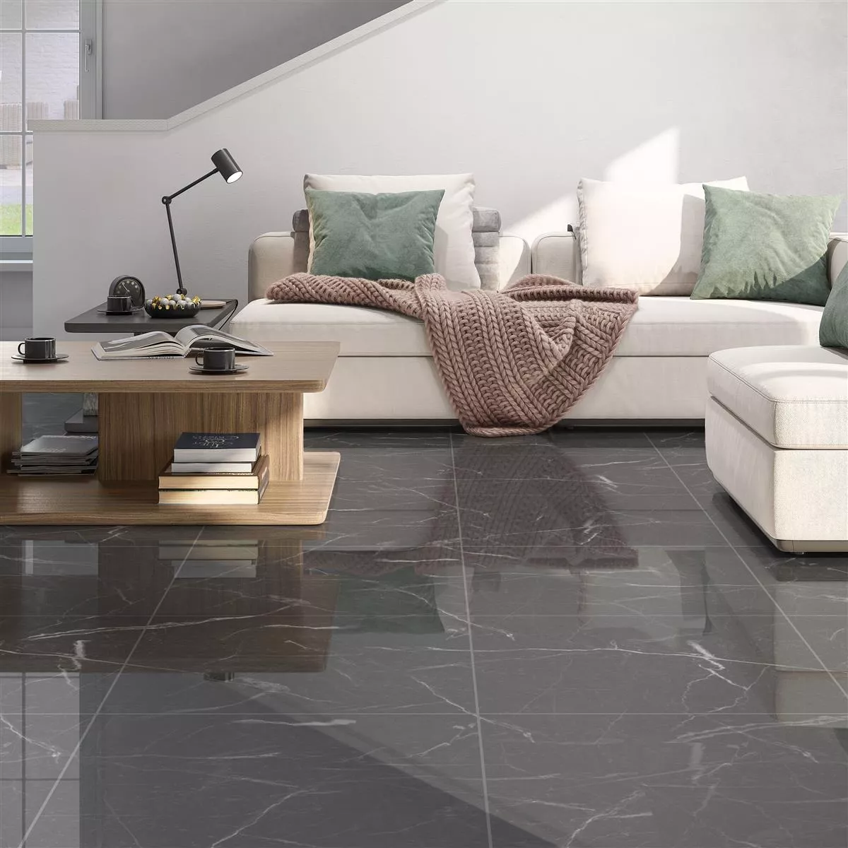 Podlahové Dlaždice Santana Mramorový Vzhled Leštěná Tmavě Šedá 60x60cm