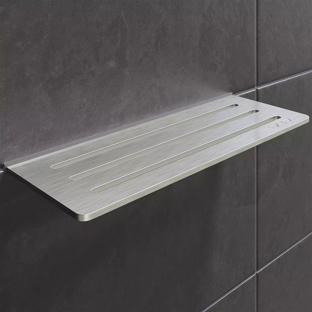 Obdélníková nástěnná police V koupelně nebo kuchyni: Obdélníkovou polici Schlüter-SHELF-W můžete použít kdekoli v oblasti rovné stěny, kde právě pokládáte dlaždice. Díky lichoběžníkovým perforovaným upevňovacím nohám jsou police extrémně stabilní a odolné, ale zároveň zaujmou i svým moderním vzhledem. Vybírat můžete nejen mezi pěti atraktivními designy, ale také mezi broušenou nerezovou ocelí a hliníkem, z nichž druhý je kvalitně práškově lakován oblíbenou barvou TRENDLINE nebo barvou MyDesign RAL.