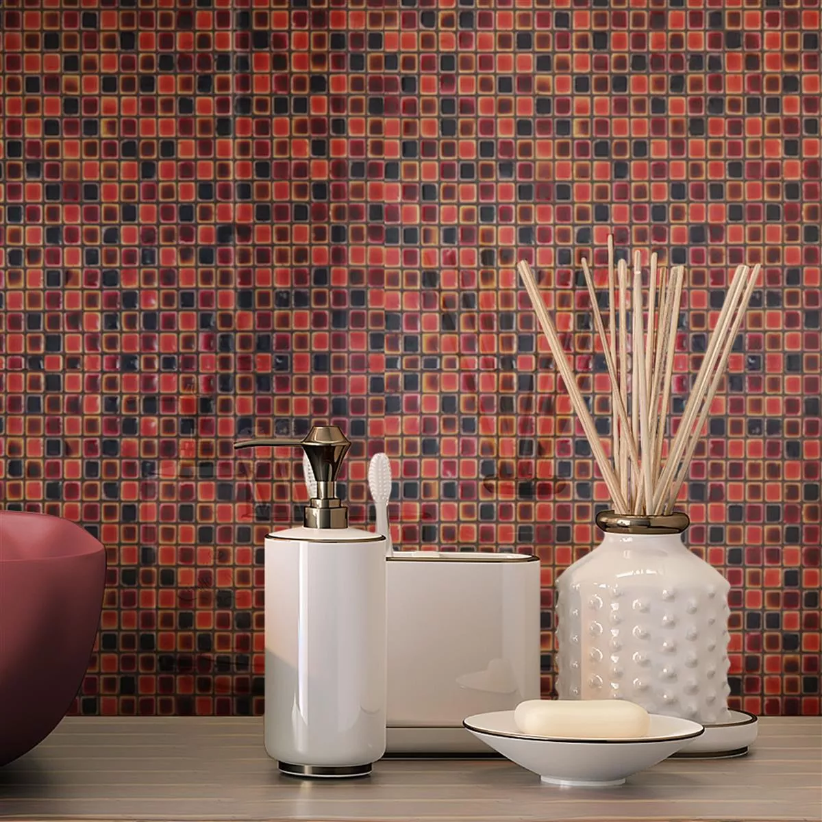 Prozkoumejte působivou krásu s mozaikou z přírodního kamene Firestone Red Mix. Teplé červené tóny a hluboká černá vytvářejí výrazný vzhled, který je ještě zvýrazněn lesklým povrchem. Tyto mozaikové dlaždice vyrobené z vysoce kvalitního přírodního kamene nabízejí nejen vizuální přitažlivost, ale také trvanlivost.