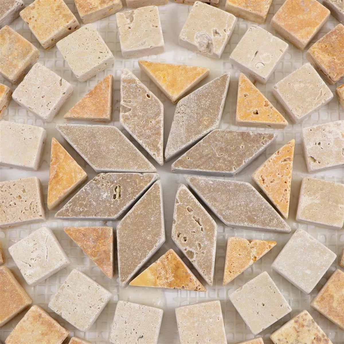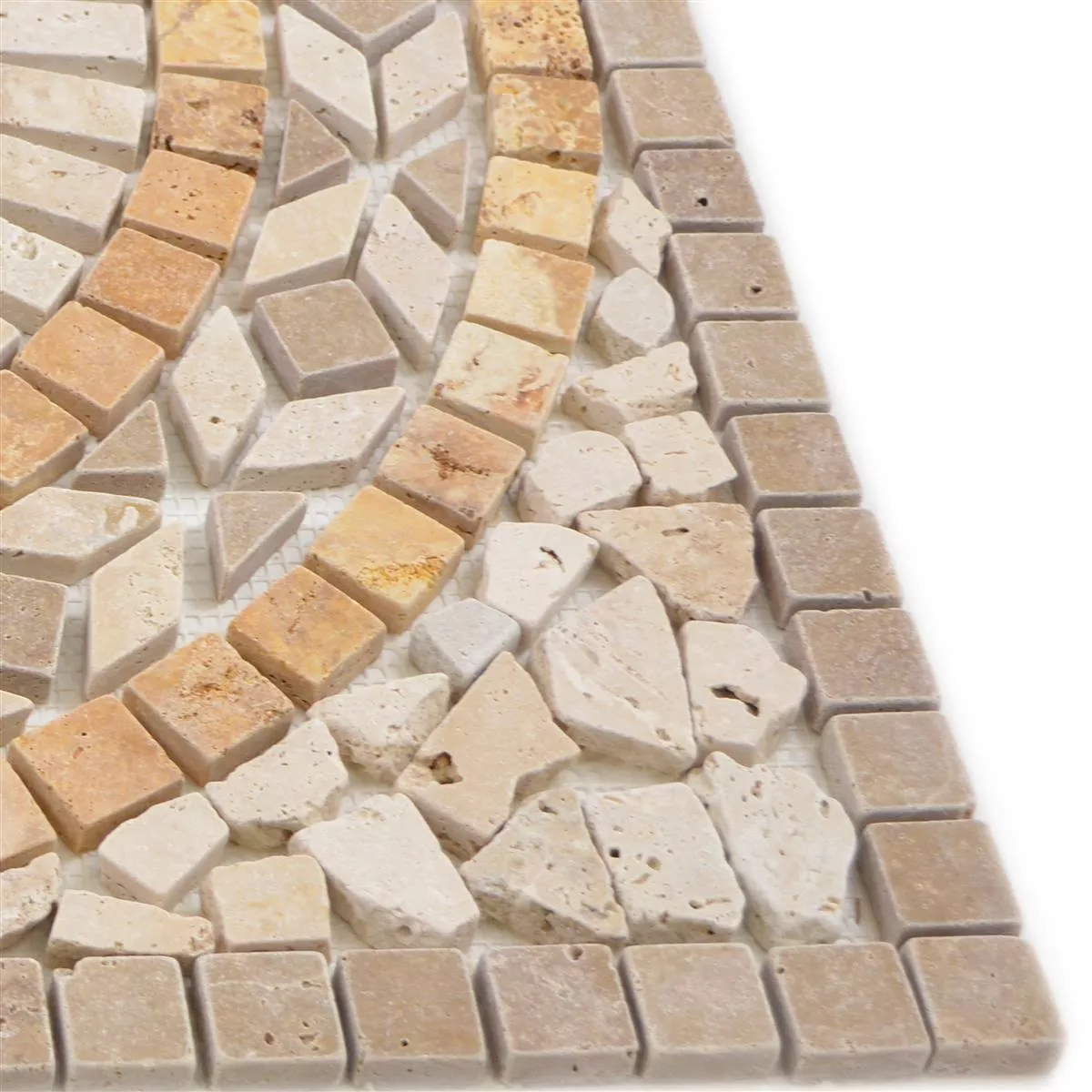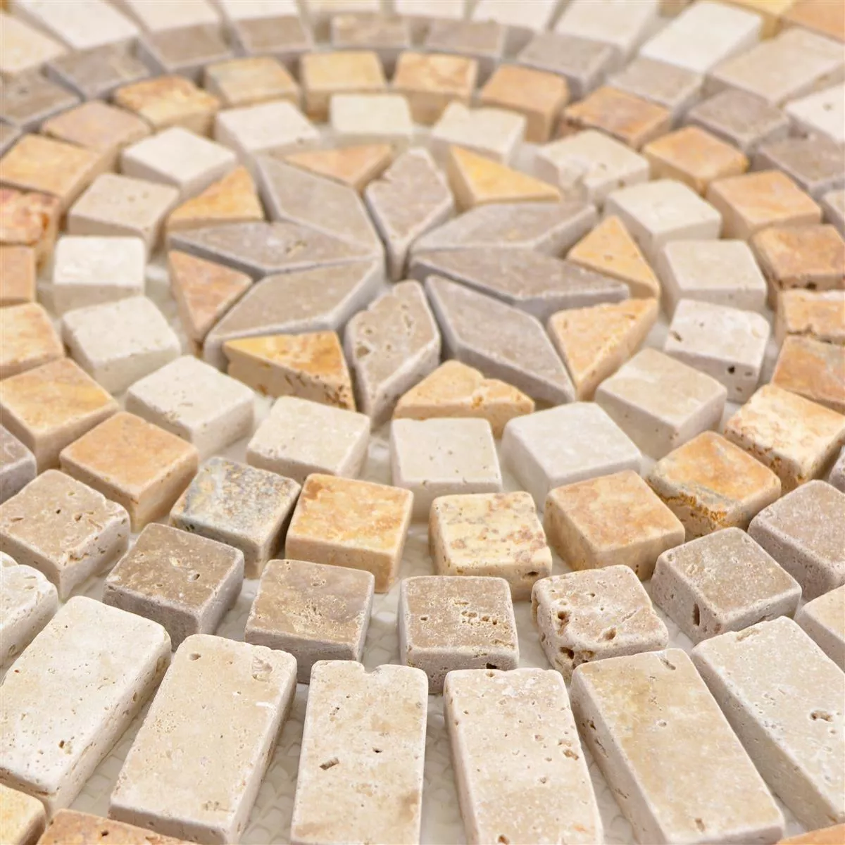 Dlaždice z přírodního kamene jsou vyrobeny z travertinu a lze je použít mnoha způsoby. Jsou vhodné nejen do interiéru, ale také do exteriéru. Jsou protiskluzové a mrazuvzdorné. Úroveň oděru 4 umožňuje každodenní použití dlaždice. Vzhledem k tomu, že mozaikové dlaždice lze použít také ve vlhkých oblastech, jsou dokonalou ozdobou oblasti bazénu.