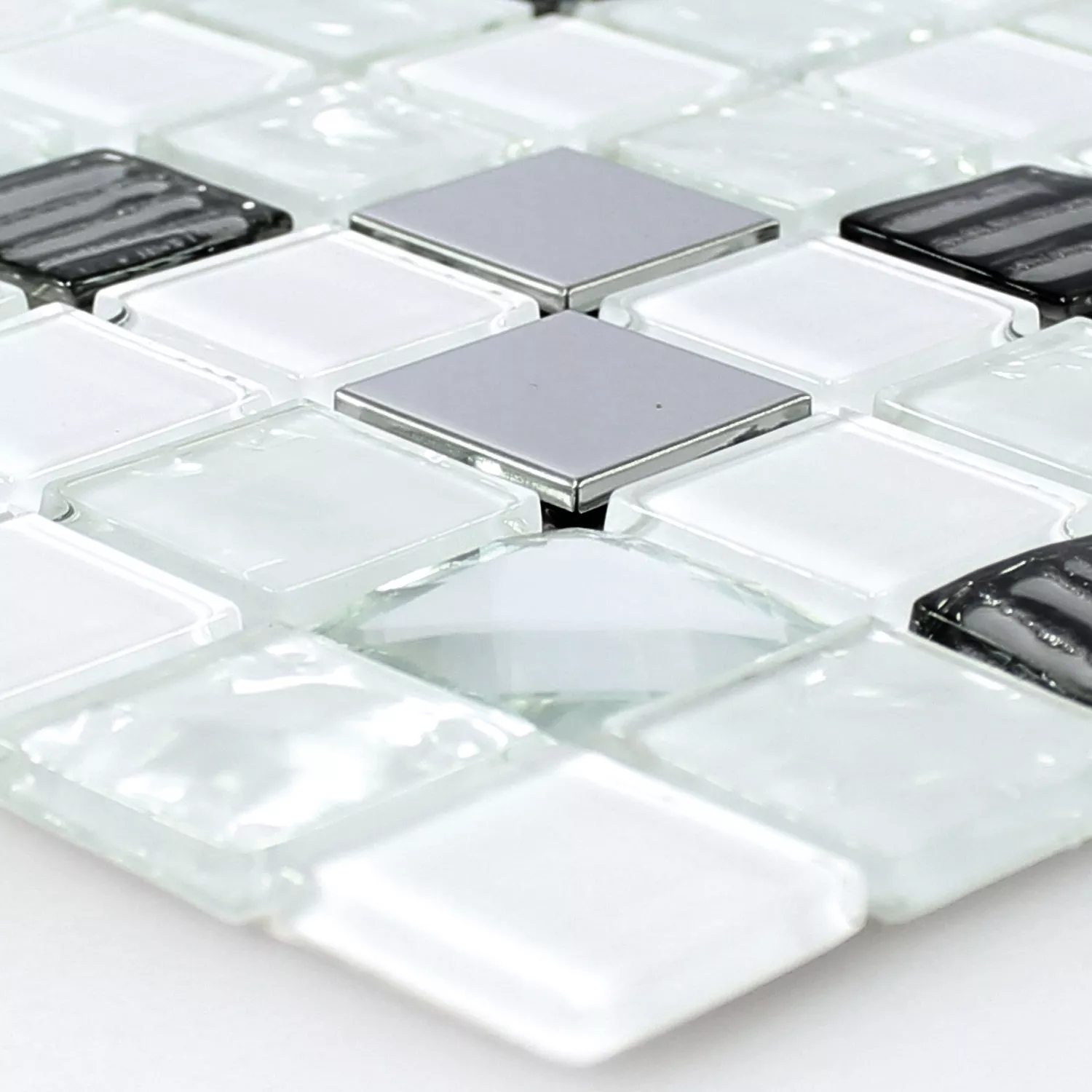 Glas Edelstahl Mosaik Amasya Selbstklebend Weiss Silber