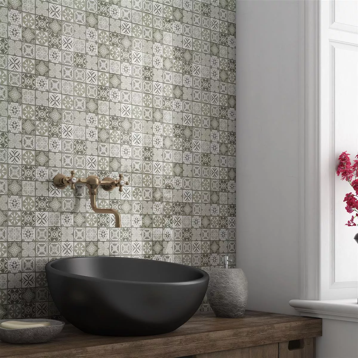 Skleněné mozaikové dlaždice Magnolia o hmotnosti 1,63 kg na podložku se snadno manipulují a instalují. Jejich vintage vzhled v kombinaci s lesklým skleněným povrchem dodává každé místnosti hřejivý a příjemný pocit.