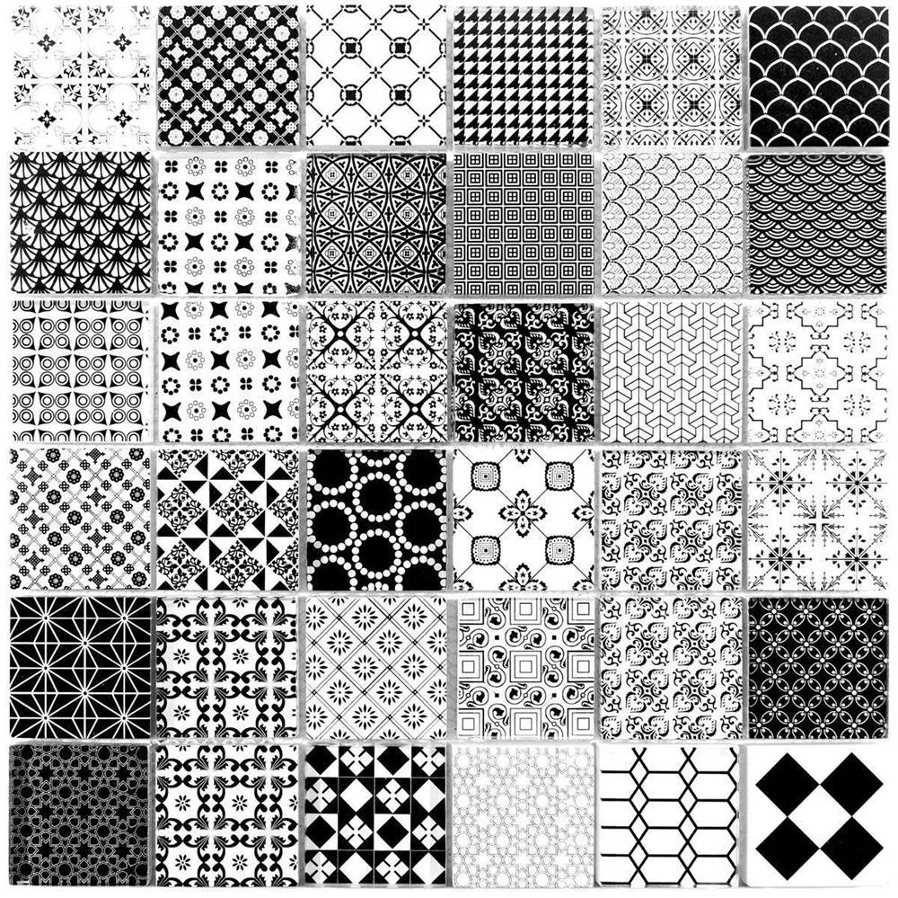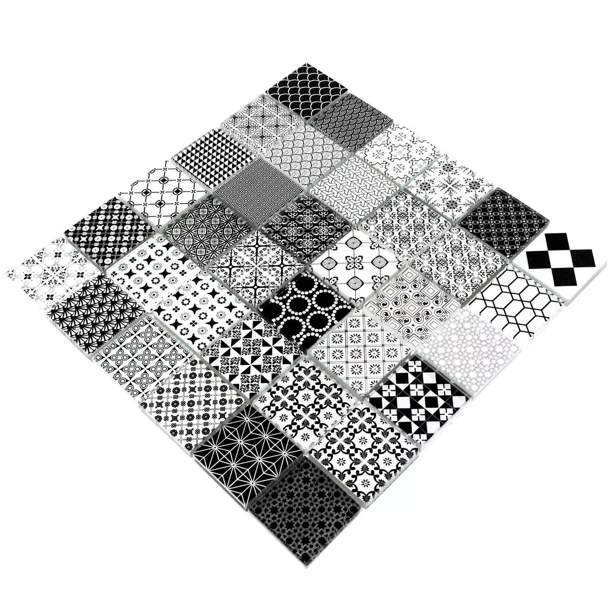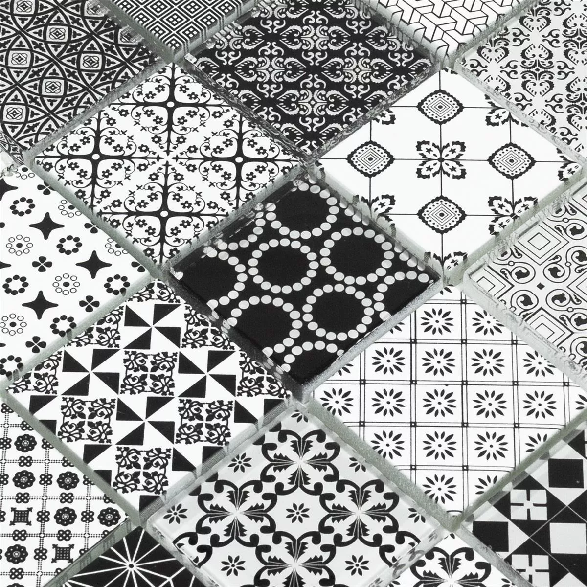Skleněná Mozaika Dlaždice Ornamento Černá Bílá