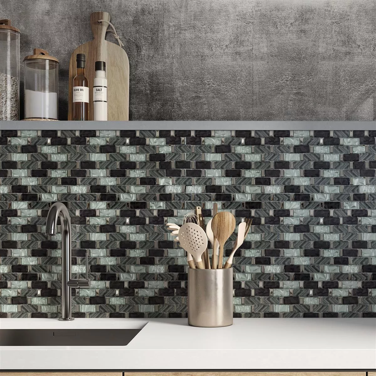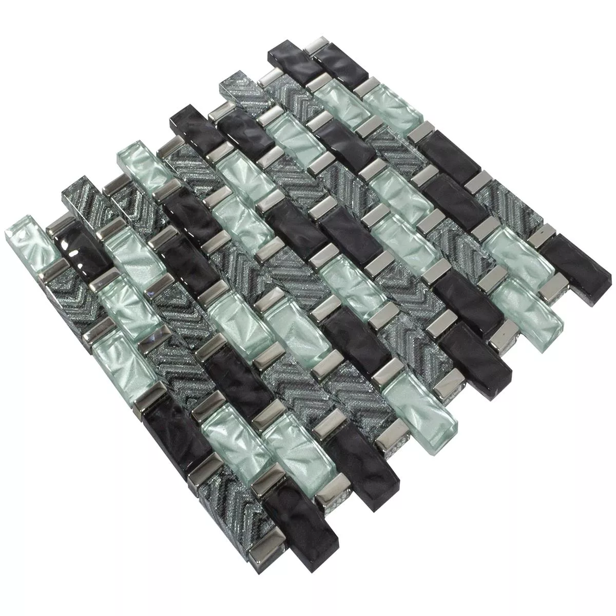 Skleněná Mozaika Dlaždice Vancouver Zvlněné Šedá Modrá Mix