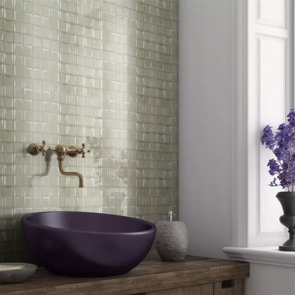Tyto skleněné mozaikové dlaždice spojují estetiku a funkčnost. Jejich hmotnost a vysoká kvalita zpracování z nich činí obklady stěn s dlouhou životností a snadnou údržbou. Vneste do svých pokojů nadčasově elegantní atmosféru se skleněnou mozaikou Venice 3D Cream a navrhněte si je podle svých individuálních představ.