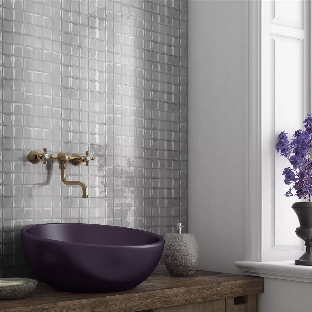 Ponořte se do moderního luxusu se skleněnou mozaikou Venice 3D Silver. Fascinující 3D vzhled a lesklý stříbrný povrch vytvářejí současnou eleganci. S velikostí kamene 48x48mm a tloušťkou 8mm nabízí tyto mozaikové obklady nejen vizuální sofistikovanost, ale také řešení s dlouhou životností.