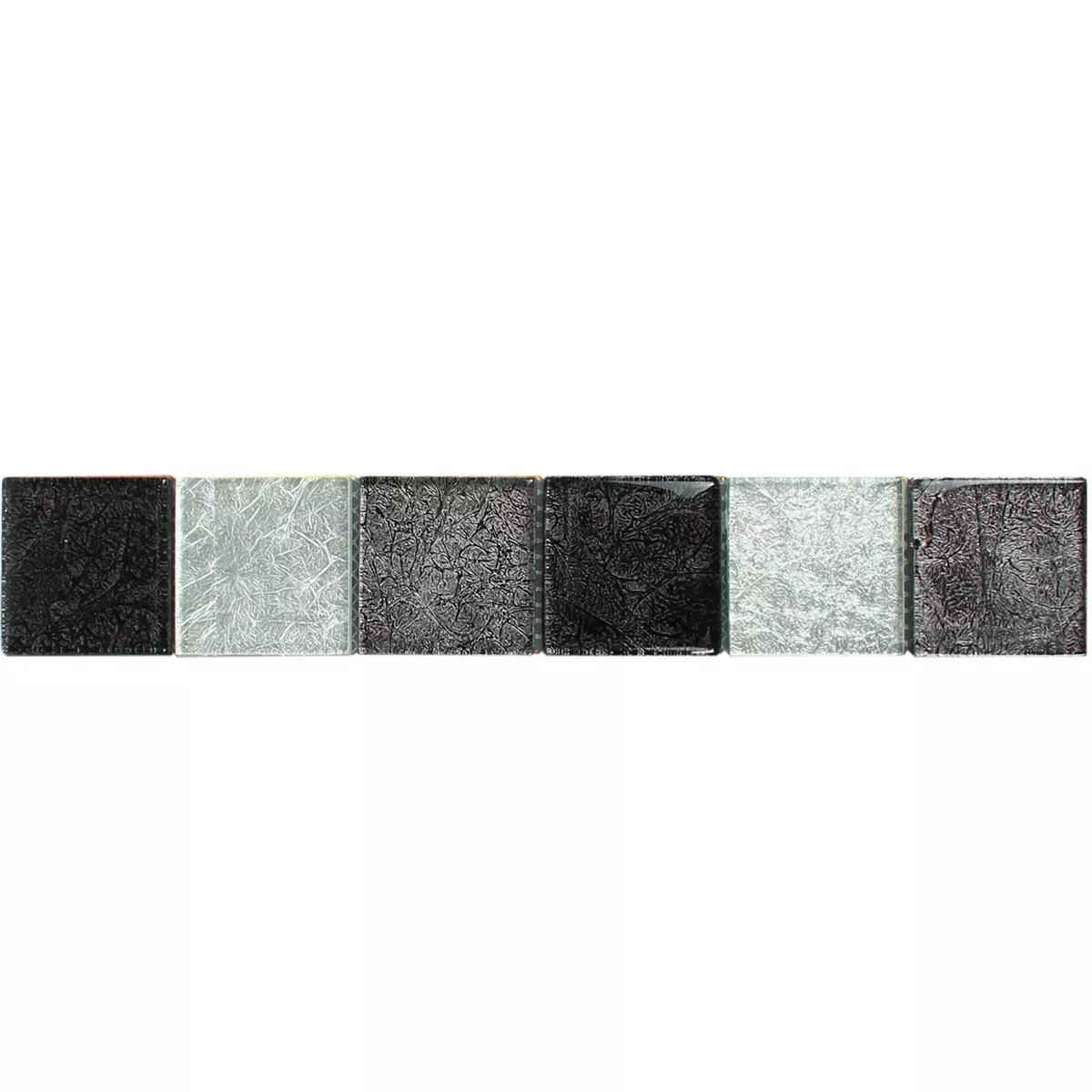 Glas Fliesenbordüre Johnstown Schwarz Silber Q23