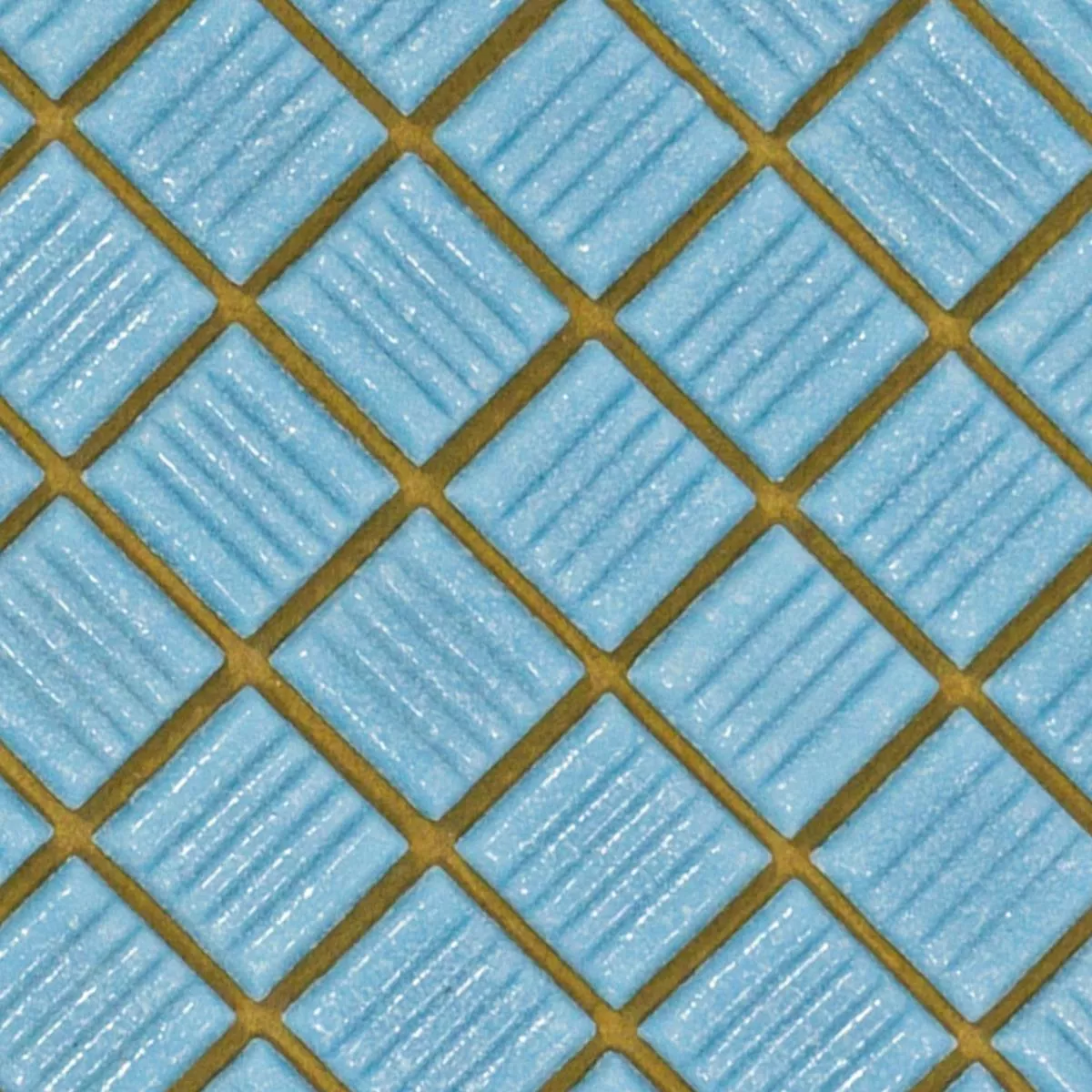 Nebesky modré mozaikové dlaždice Agata lze použít jako dlažbu i obklady a snadno se instalují pomocí lepicí malty. Ať už v kuchyních, obývacích pokojích, koupelnách nebo bazénech – tyto dlaždice nabízejí dlouhotrvající a elegantní řešení pro vaše designové nápady.