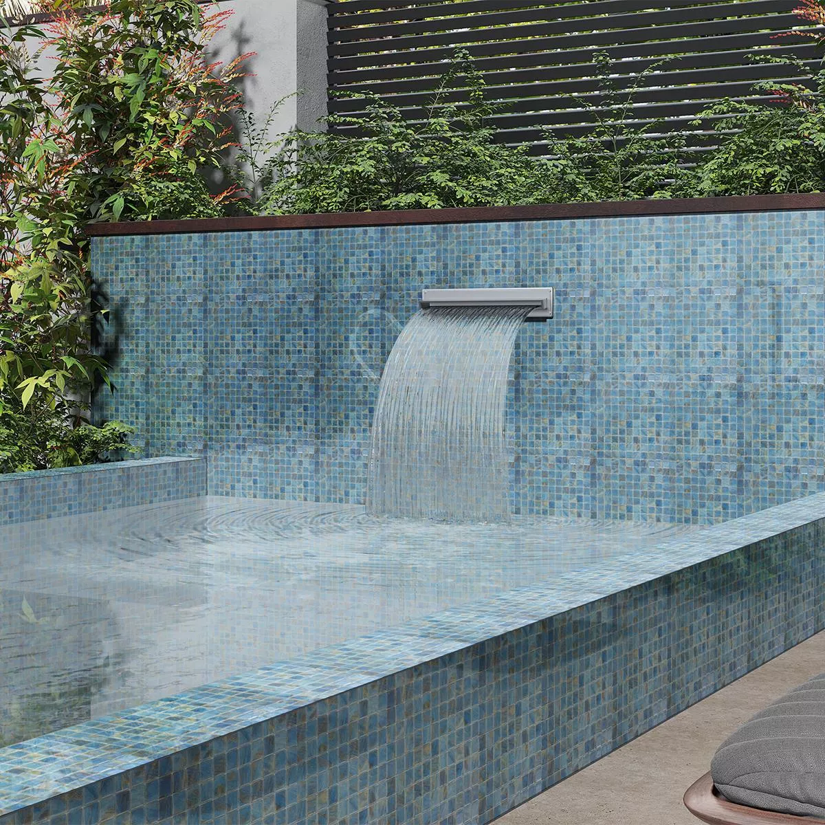 Bazénová mozaika Alassio v modré barvě nabízí stylové a funkční řešení pro různé aplikace. S podložkou o rozměrech 31,6 x 31,6 cm a tloušťce 4 mm je tato dlaždice ideální na stěny a podlahy. Je vyrobena z vysoce kvalitního skla a ekoskla a jeho lesklý povrch se vzhledem přírodního kamene dodá každé místnosti elegantní a moderní nádech.