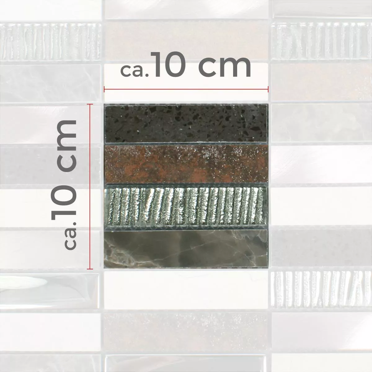 Každá dlaždice a každá mozaika mají různé požadavky na ořezávání, pokládku a zpracování kvůli individuálním vlastnostem materiálu a podmínkám použití. Požádejte místního odborníka o správné a bezpečné položení vaší mozaiky nebo dlaždic. Nezodpovídáme za neodborné použití a chybné provedení stavebních materiálů.