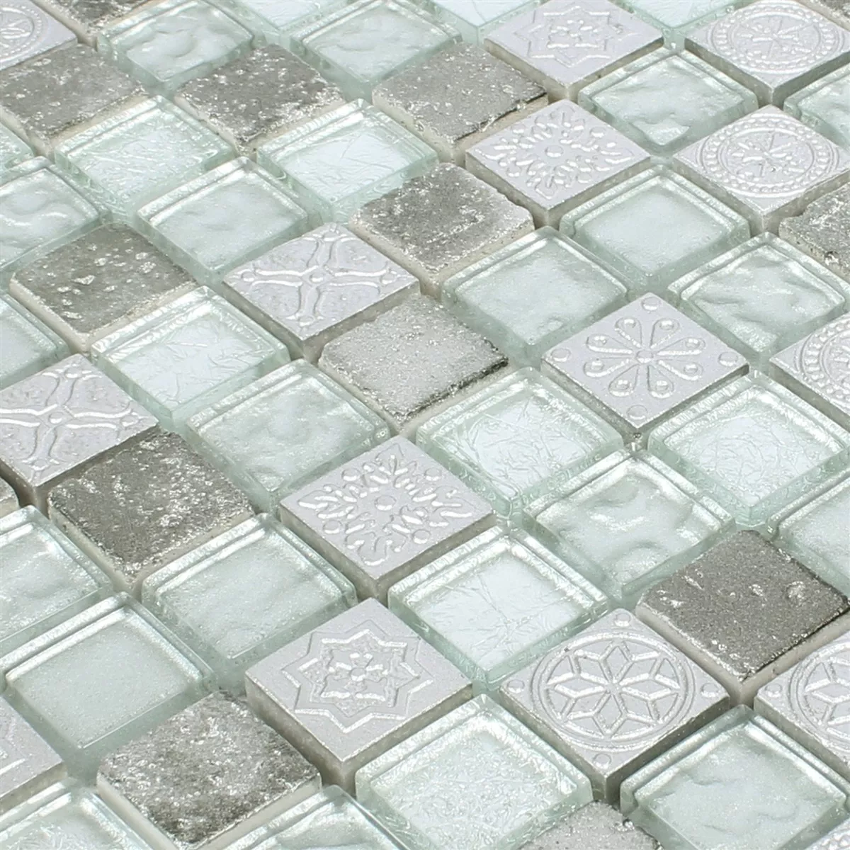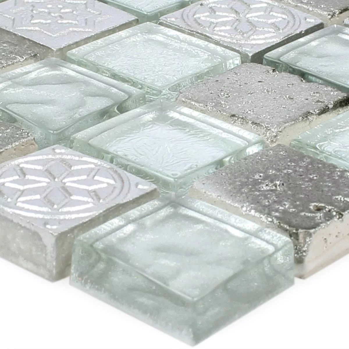 Vzorek Mozaiková Dlaždice Georgia Sklo Přírodní Kámen Mix Stříbrná