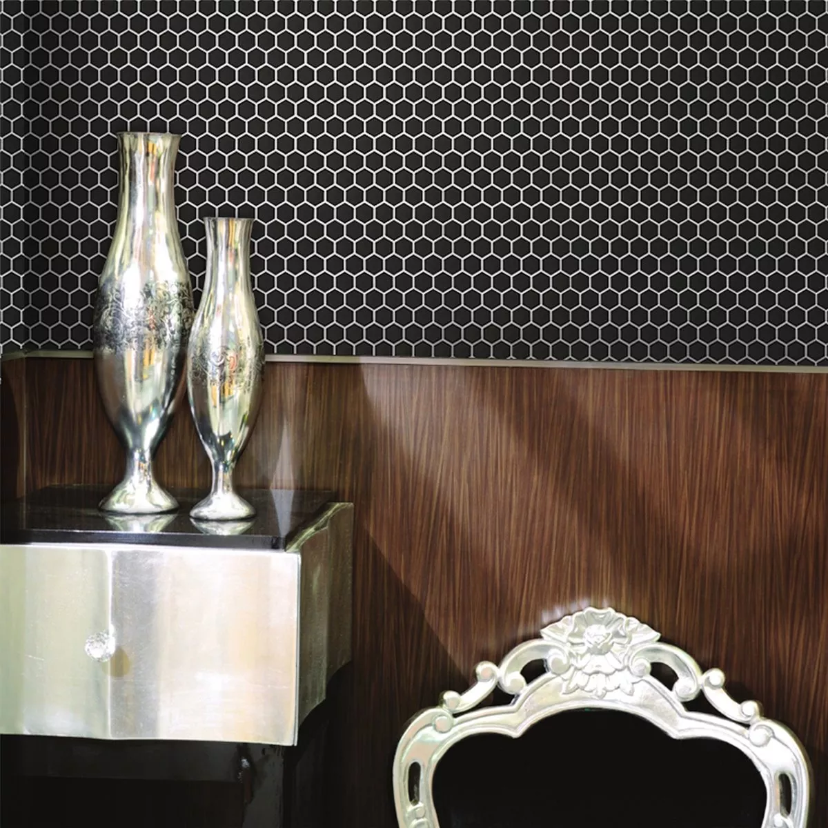 Vzorek Mozaiková Dlaždice Keramika Šestiúhelník Černá Matný H23