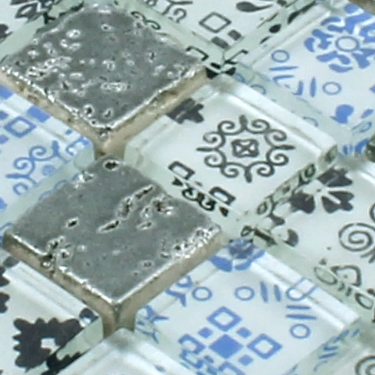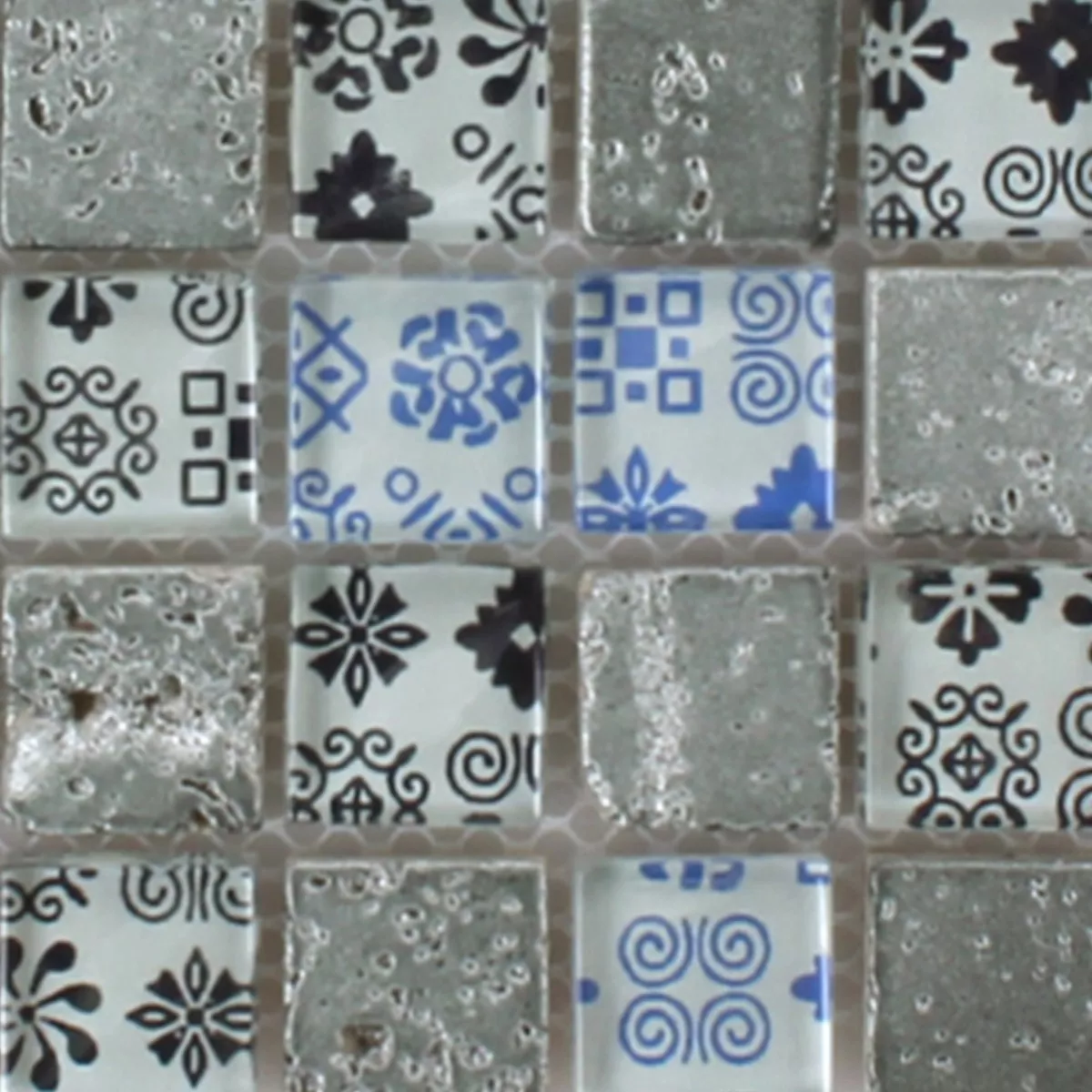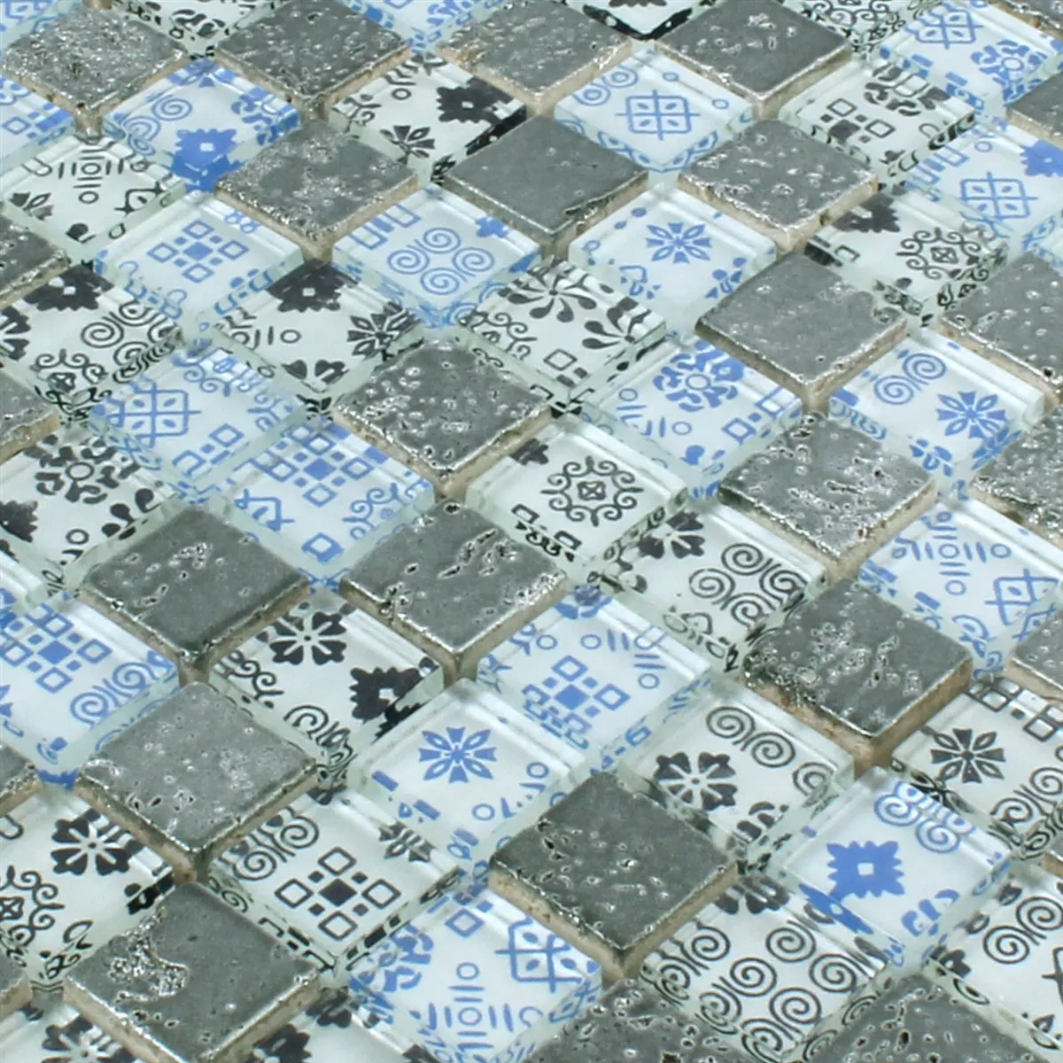 Vzorek Mozaiková Dlaždice Pryskyřice Sklo Belmont Modrá Stříbrná