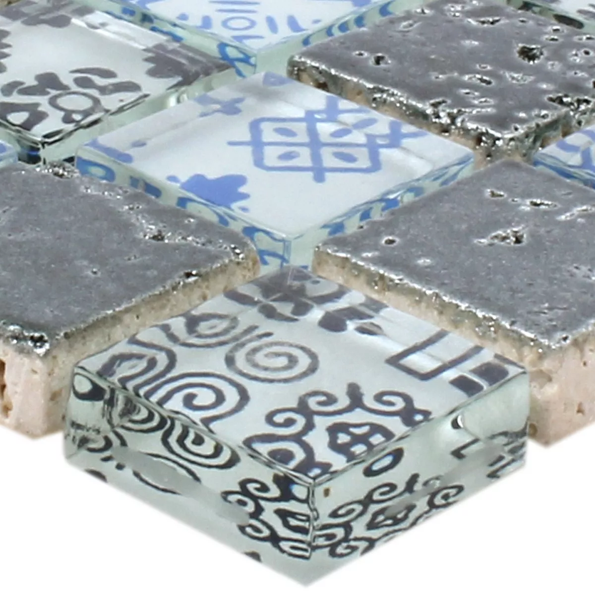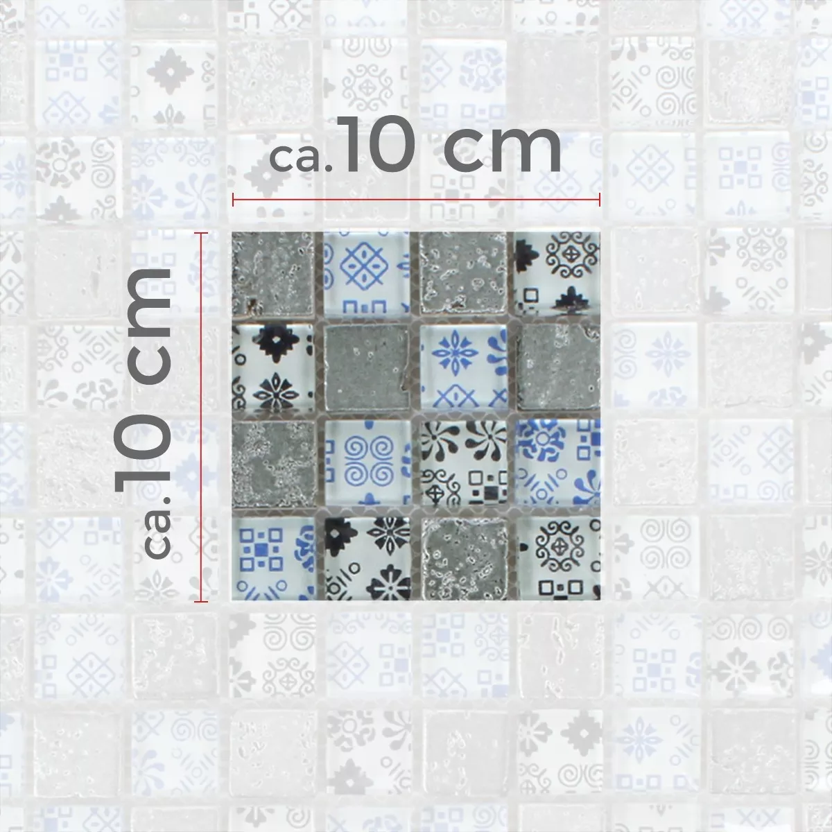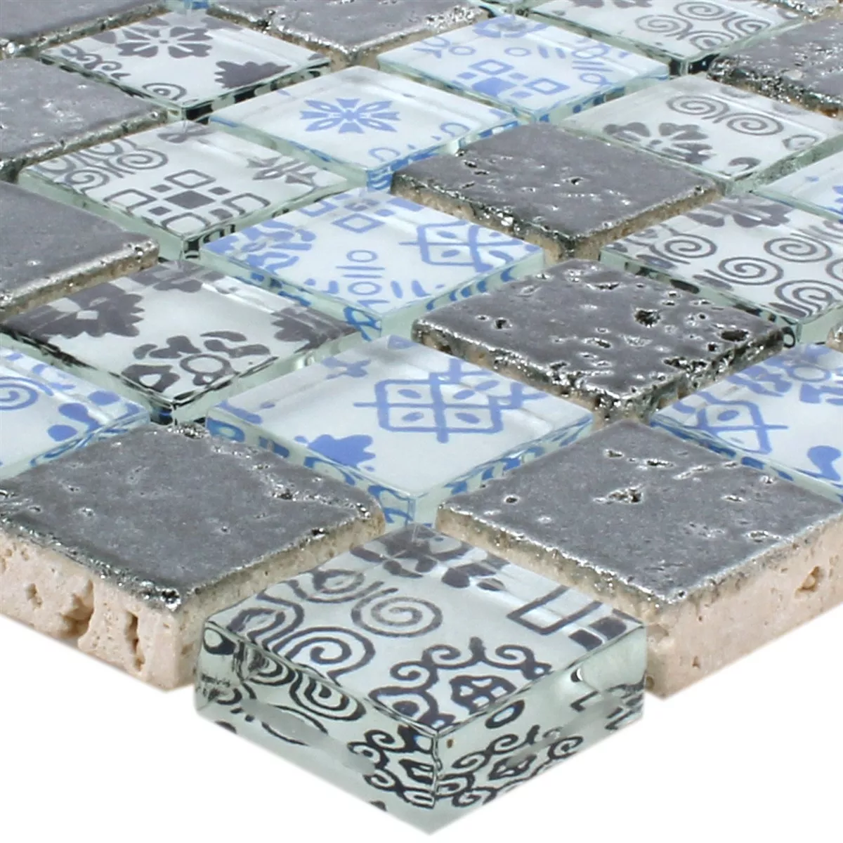 Vzorek Mozaiková Dlaždice Pryskyřice Sklo Belmont Modrá Stříbrná