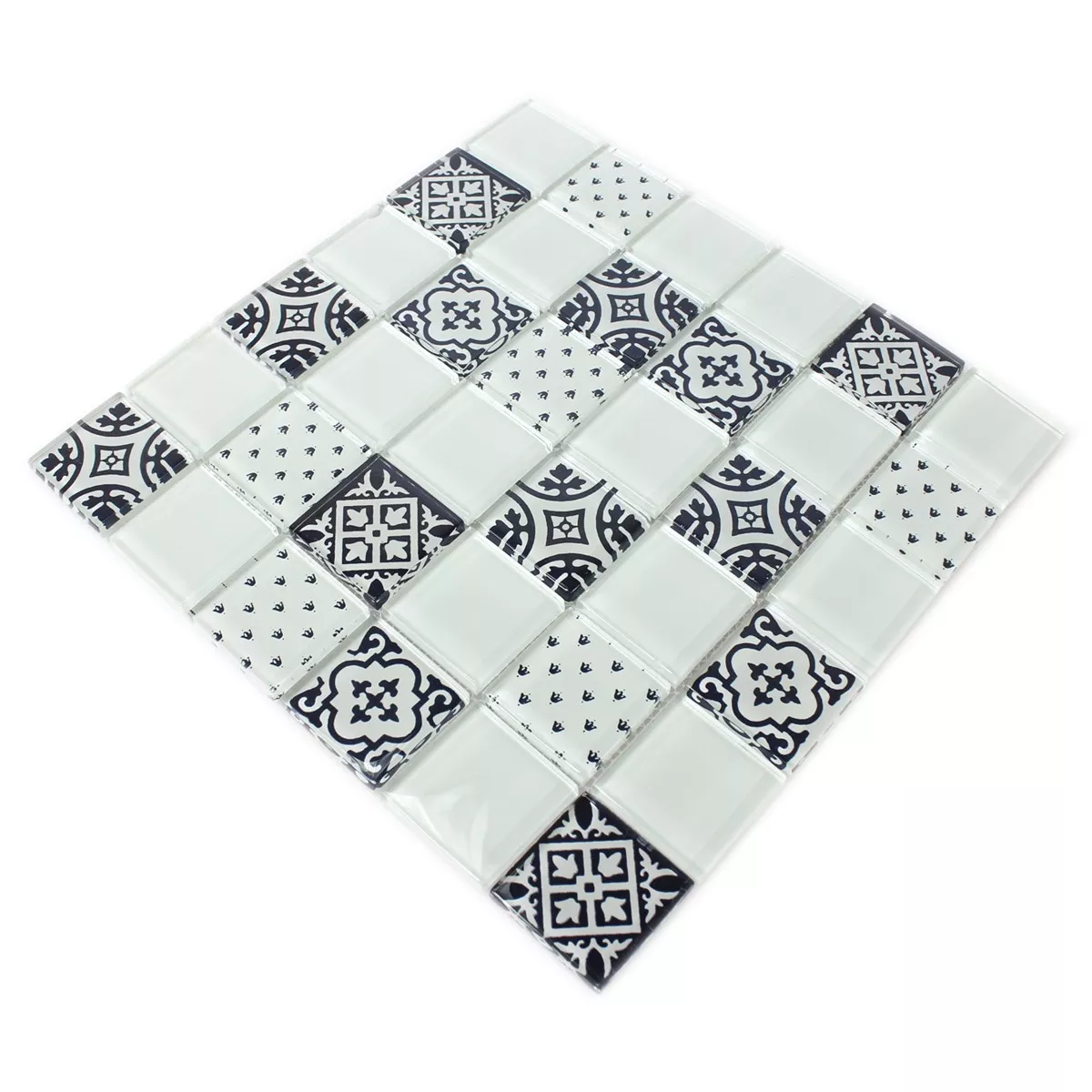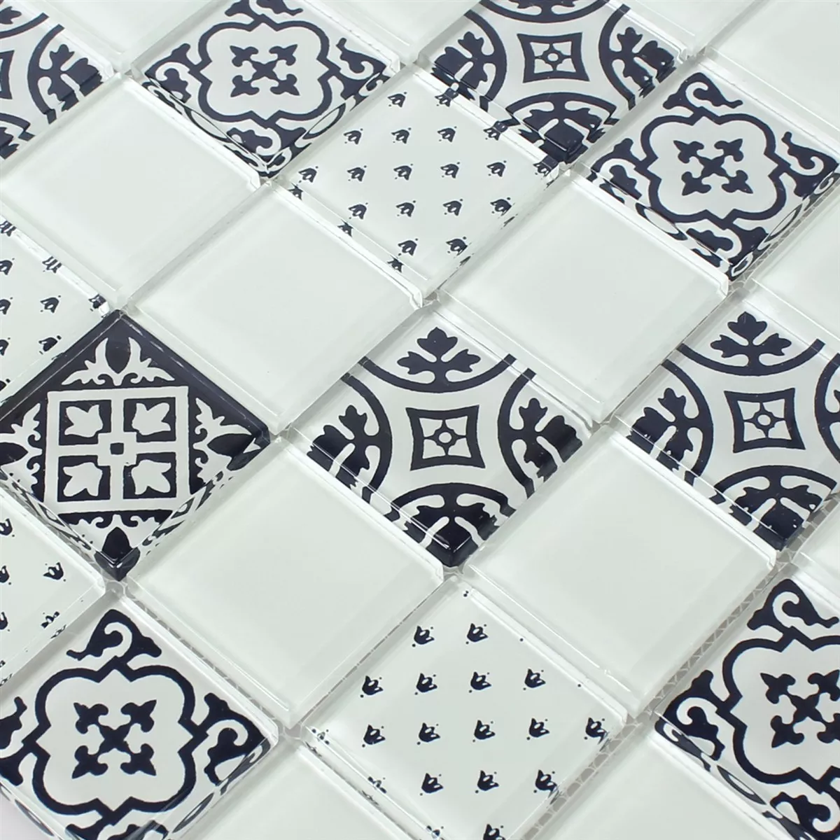 Vzorek Mozaiková Dlaždice Sklo Barock Ornament Bílá