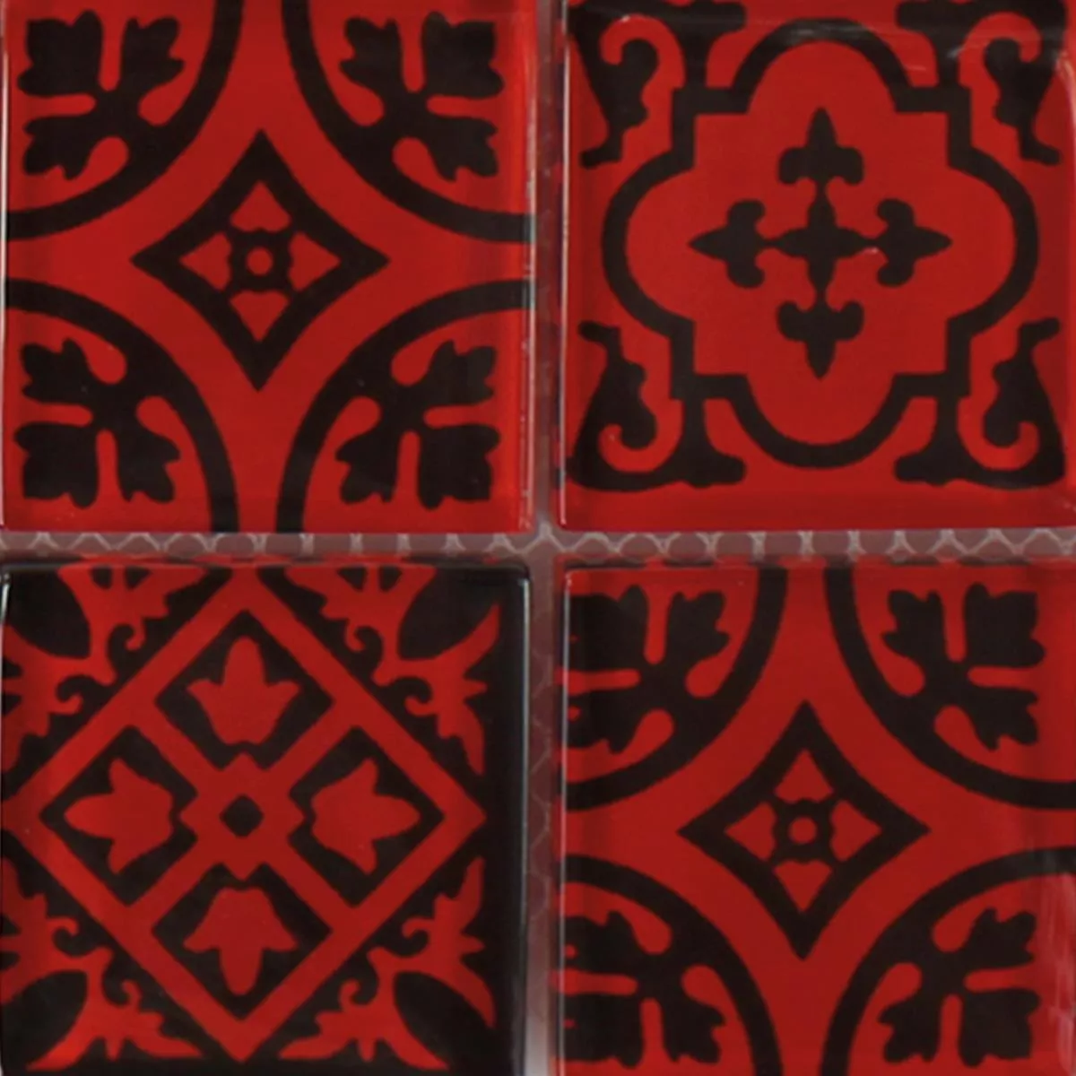 Vzorek Mozaiková Dlaždice Sklo Barock Ornament Červená