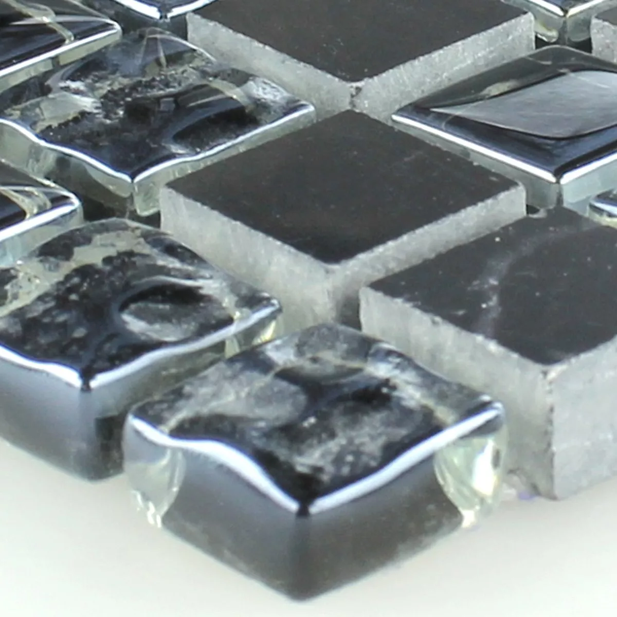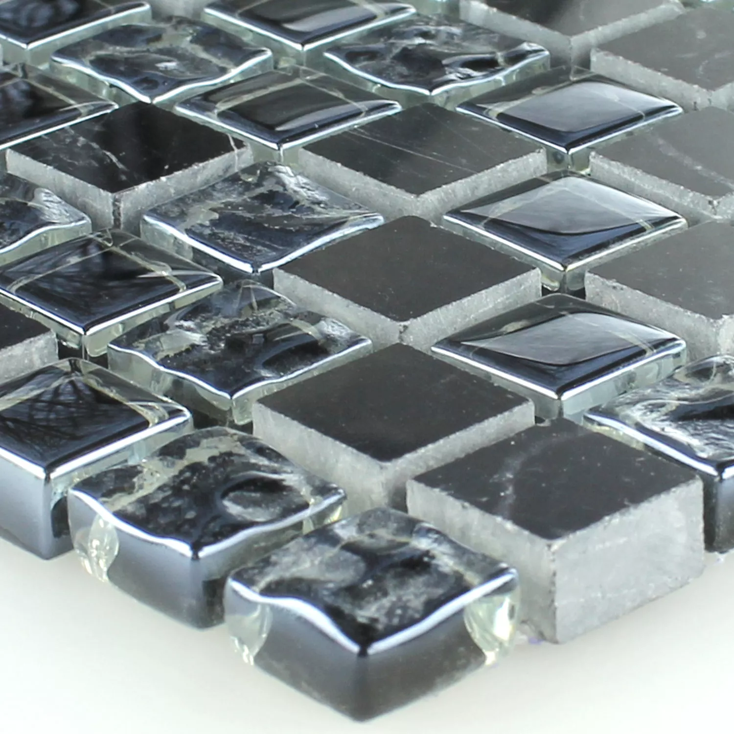 Vzorek Mozaiková Dlaždice Sklo Mramor Přírodní Kámen Černá Drážkovaný