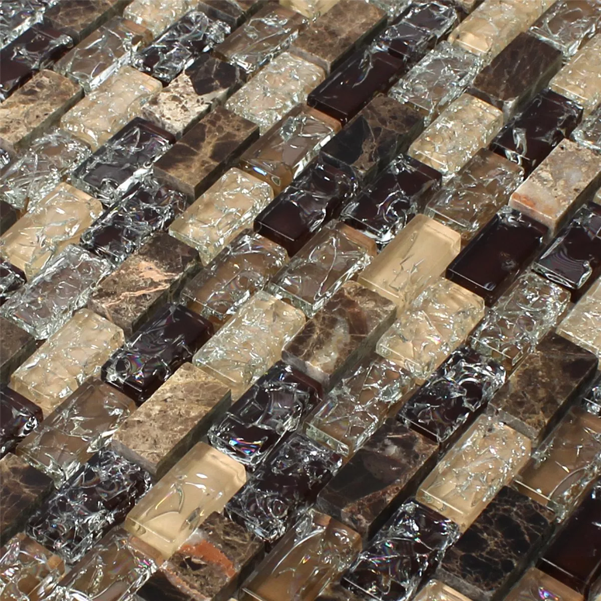 Vzorek Mozaiková Dlaždice Sklo Přírodní Kámen Bricks Dark Emperador