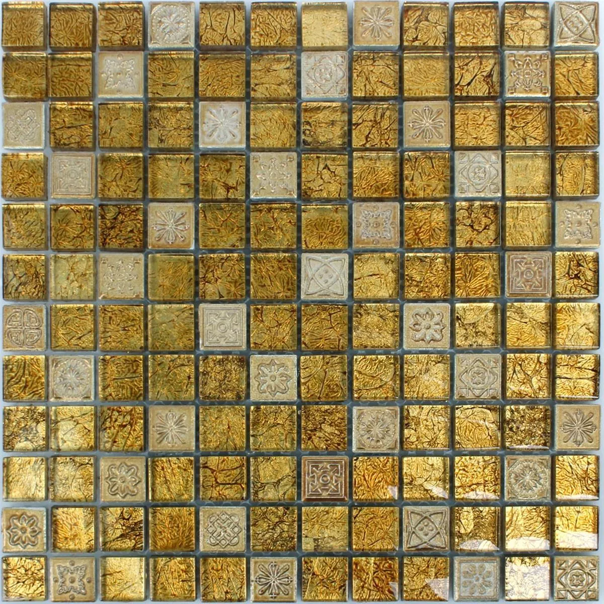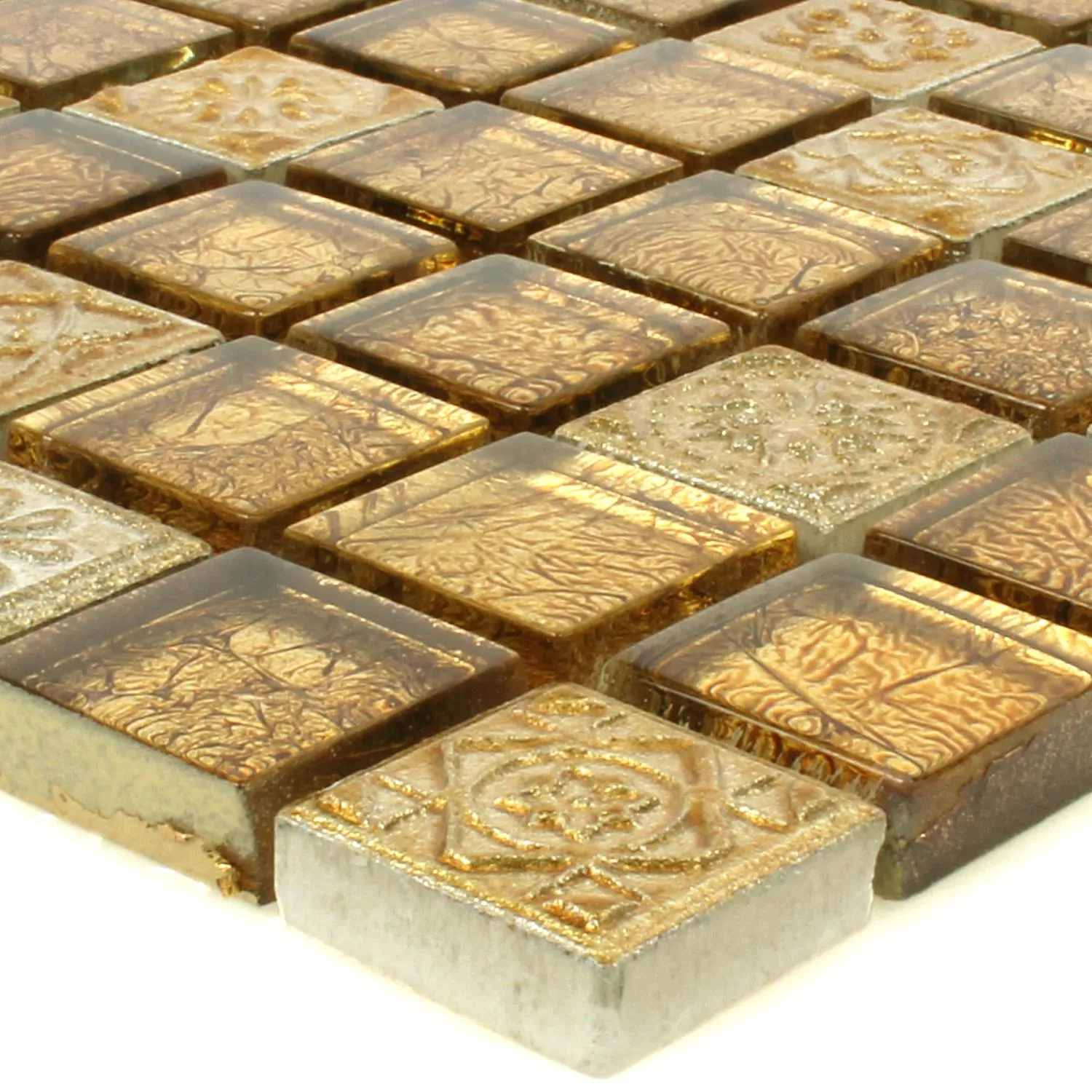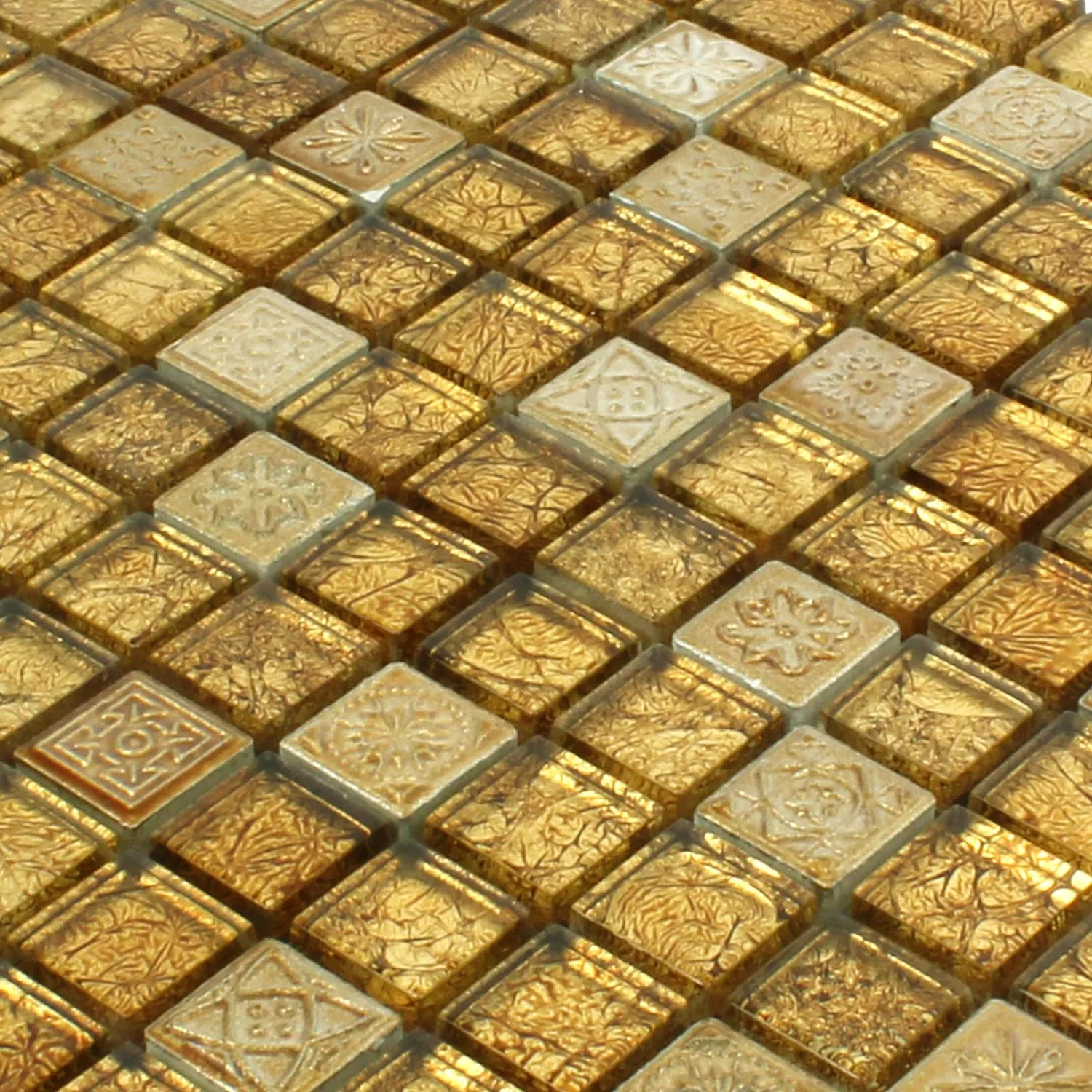 Vzorek Mozaiková Dlaždice Sklo Přírodní Kámen Coloniale Zlatá