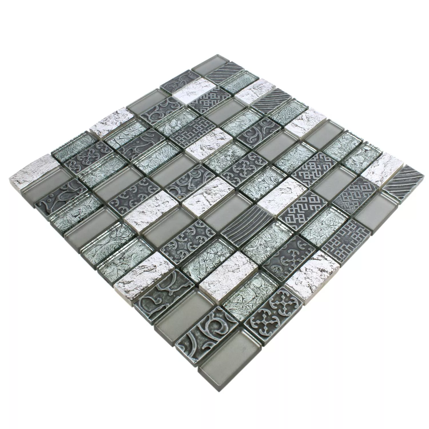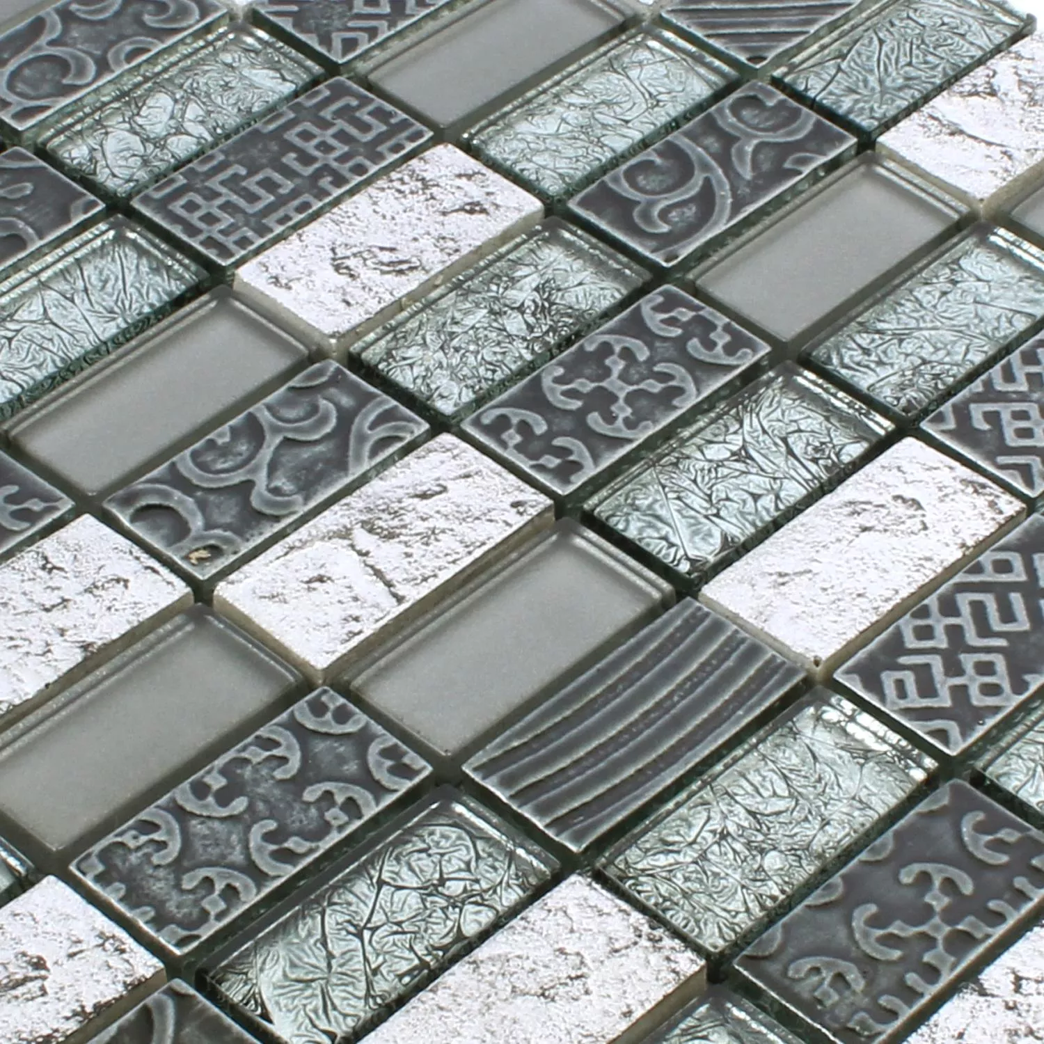 Vzorek Mozaiková Dlaždice Sklo Přírodní Kámen Piroshka Stříbrná