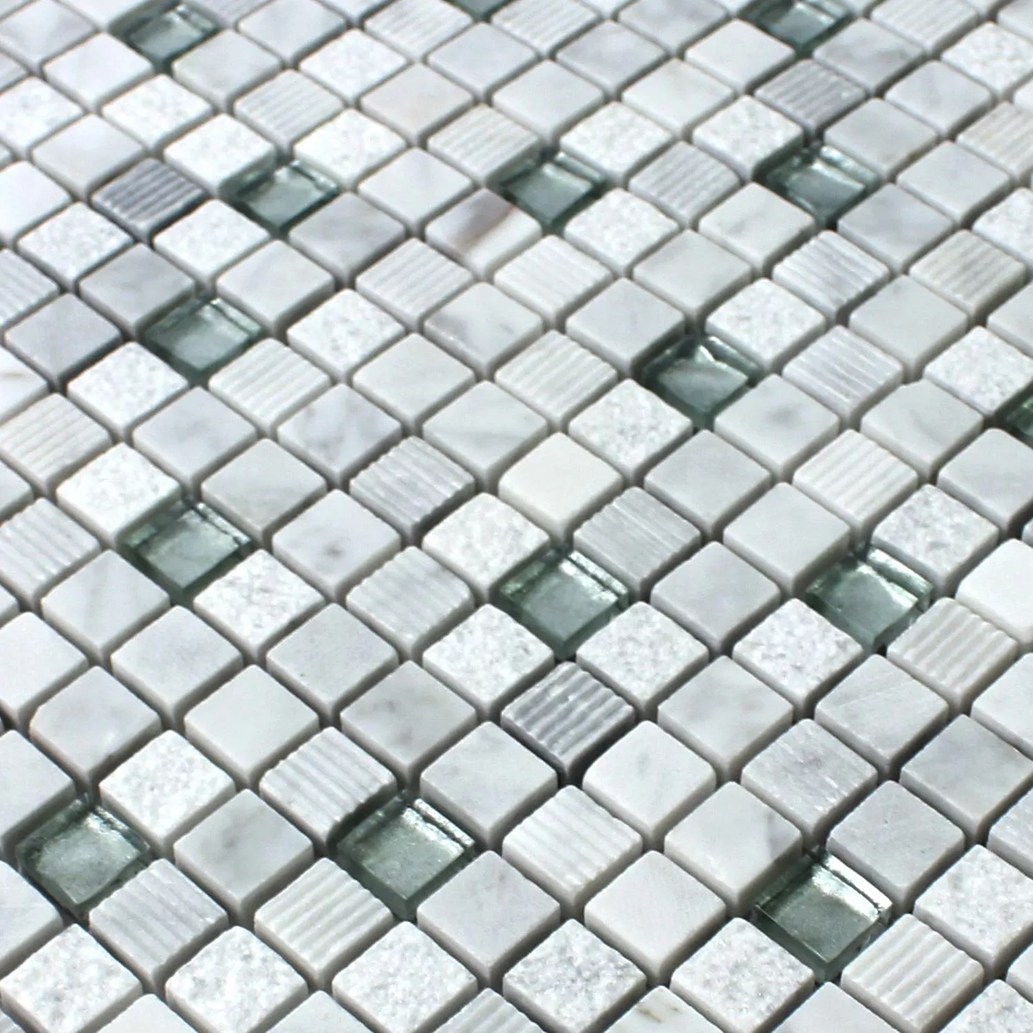 Vzorek Mozaiková Dlaždice Sklo Přírodní Kámen Yukon Bílá
