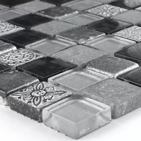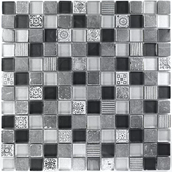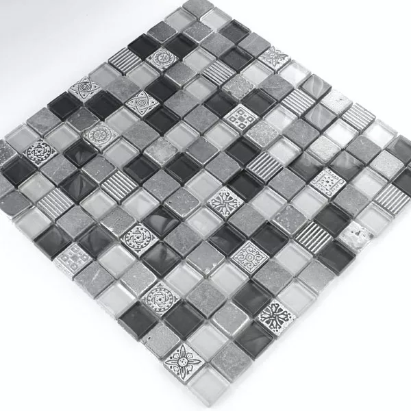 Vzorek Mozaiková Dlaždice Sklo Vápenec Mramor Boston Šedá